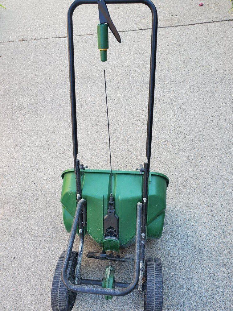 CashAppWorks perfectly, Scotts Speedy Green 2000, 8,500 sq. ft. Capacity, Sta-Green Drop Spreader 4,500 sq. ft. Capacity. Scotts Speed Green, EdgeGuard, DLX, 9,000 sq.ft. Capacity. Scotts Metal High Capacity Spreader.
