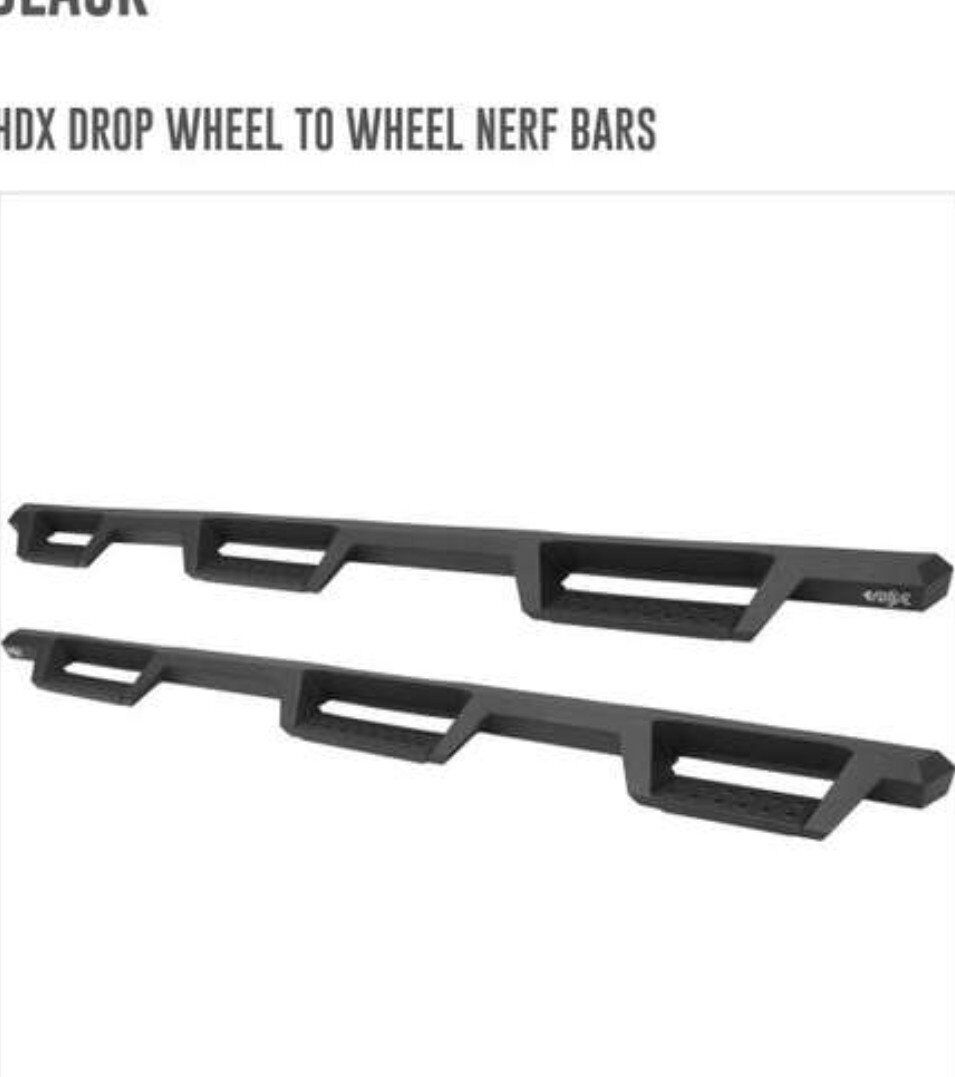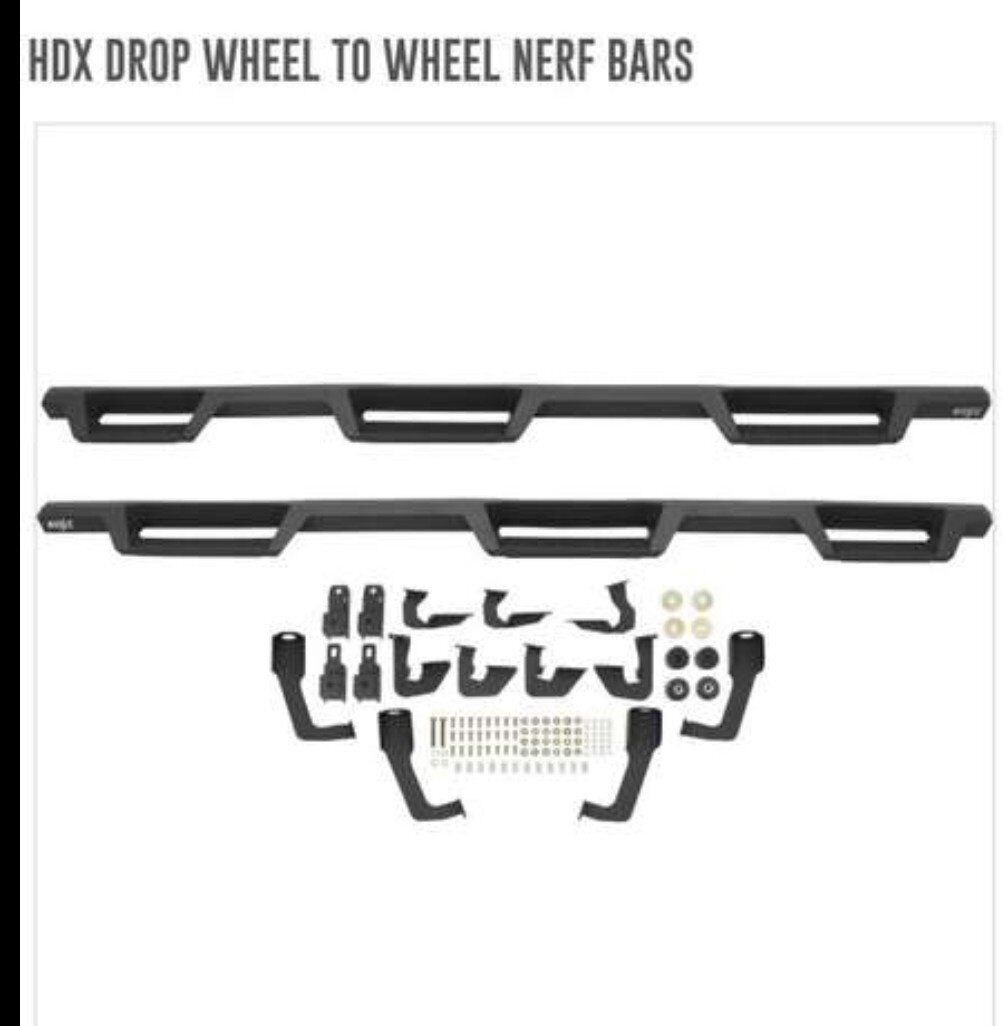 Westin's HDX Drop Wheel-to-Wheel Nerf Step Bars feature a notched bar design with a 3rd step location for easy bed access. They provide strong traction with over 2 inches more of toe/heel step area than our competitors, giving truck owners a solid fit and rugged look. The longer length of our HDX Drop Wheel-to-Wheel Nerf Step Bars provides added space, durability and access for drivers and passengers. Includes mount kit and is offered in a variety of vehicle specific applications. Bolt-on installation so no drilling required on most applications.