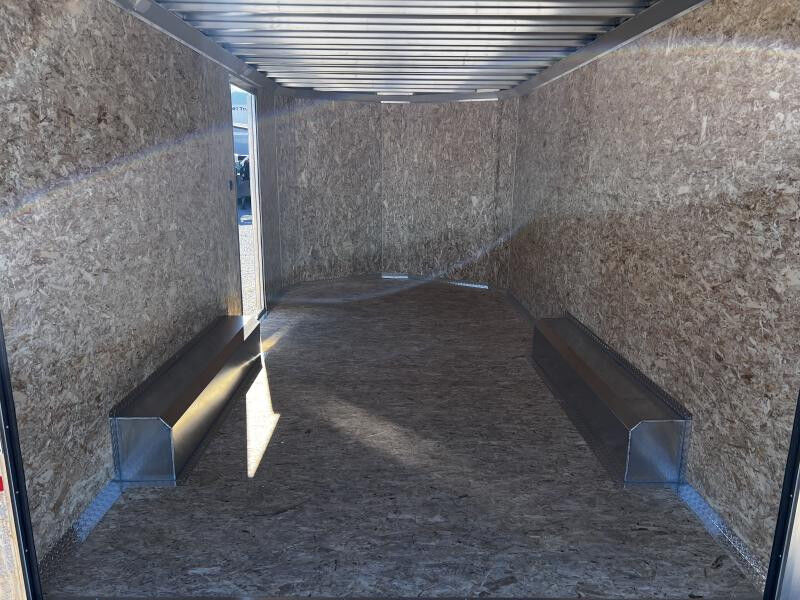 Stock #: RO1022 Trailer Specs: Color: White .030 Aluminum Overall: Length: 21'2" Width: 8'5" Height: 8'9" Interior/Bed: Length: 16' Box + V-Nose Width: 8'2" Height: 7' Door/Ramp: Rear Spring Assist Ramp Door (Width: 81" x Height: 80") Weight: 2,895 lbs. | GVWR: 9,990 lbs. | Payload: 7,095 lbs. Axle(s): 5,200 lb. Dexter Spring Braked Axle w/ EZ Lube Hubs Tire/Wheel: ST225/75R15 | Load Range C Coupler: Type: Bumper Pull | Size 2 5/16" | 7-Way 12V Connector 16" OC Vertical Posts | 16" OC Crossmembers | 24" OC Tube Roof Bows 3 Year Limited Warranty Standard Features: Tube Chassis 1"x1" Tube Walls 1.5"x1.5" Tube Roof One Piece Aluminum Roof Aluminum Capped Rear Corner Posts Tongue and Bumper Coated w/ Rugged Bedliner 24" Front Stoneguard Radius RV Man Door (36" x 78") 3/4" Paktite Flooring 3/8" Paktite Sidewalls LED Interior Dome Light w/ Wall Switch Full LED Light Package w/ Encased Wiring Common Addons: Wall Mounted Spare Tire 10 ft. E-Track Stick Recessed 2,500# D-Ring Additional Colors Available Call for Availability WASATCH TRAILER SALES - LARGEST TRAILER SELECTION IN UTAH Springville: (801) 528-1581 | 1180 S 2000 W, Springville UT, 84663 View More Inventory: www.wasatchtrailer.com