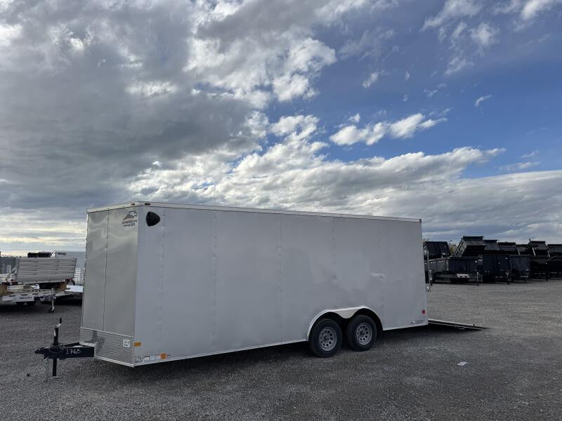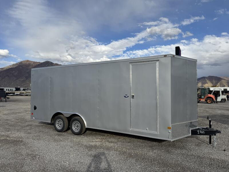Stock #: AH2106 Trailer Specs: Color: Silver .030 Aluminum Overall: Length: 23'6" Width: 8'6" Height: 8'11" Interior/Bed: Length: 20' Box + V-Nose Width: 8' Height: 7'0" Door/Ramp: Rear Spring Assist Ramp Door (Width: 91" x Height: 80") Weight: 3,100 lbs. | GVWR: 7,000 lbs. | Payload: 3,900 lbs. Axle(s): (2) 3,500 lb. Dexter Spring Electric Axle w/ EZ Lube Hubs Tire/Wheel: ST205/75R15 | Load Range C Coupler: Type: Bumper Pull | Size 2-5/16" | 7-Way 12V Connector 16" OC Vertical Posts | 16" OC Crossmembers | 24" OC Tube Roof Bows 1 Year Limited Warranty Standard Features: 2"x6" Tube Main Frame 1-Piece Aluminum Roof 16" Starbright Stoneguard 3/8" PlexCore Sidewall Liner 3/4" PlexCore Flooring 32" Side Door w/ Bar Lock Flow-Thru Sidewall Vents 12v Interior LED Dome Light 12v Exterior LED Lighting Smooth Aluminum Radius Fenders Undercoated Chassis Deluxe Package .030 Aluminum Exterior 3/8" PlexCore Sidewall Liner (4) 5,000 lb. Floor D-Rings Common Addons: Wall Mounted Spare Tire 10 ft. E-Track Stick Recessed 2,500# D-Ring Additional Colors Available Call for Availability WASATCH TRAILER SALES - LARGEST TRAILER SELECTION IN UTAH Springville: (801) 528-1581 | 1180 S 2000 W, Springville UT, 84663 View More Inventory: www.wasatchtrailer.com