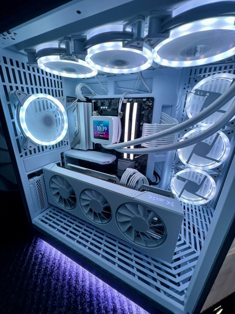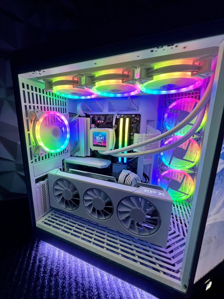 Specs: •Nvidia GeForce RTX 5070ti or AMD Radeon RX 7900 XT VR Ready • AMD Ryzen 7 or Intel 12 core i7 Processor • 32GB Ram RGB (You can change the colors/modes) • 360mm Water Cooler with RGB Tubes (You can change the colors/modes) • 2TB SSD NVMe M.2 • RGB Fans (You can change the color/modes) • 850W GOLD Power Supply • RGB Gpu Support Braket (You can change the colors/modes) • RGB PSU Cables kit (You can change the colors/modes) • white Tempered Glass Gaming Case • White LED Underglow • WIFI & Bluetooth Ready • Fresh install of Windows