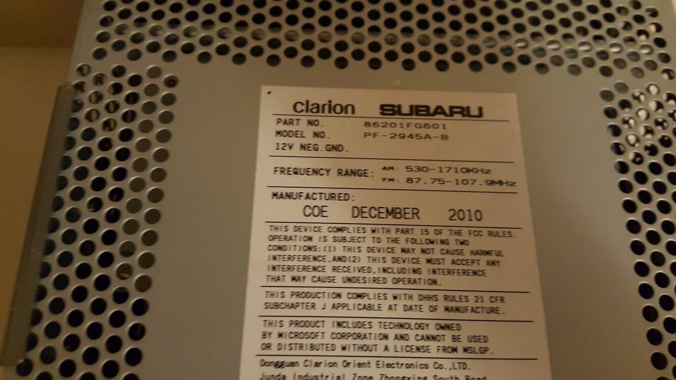 Model PF-2945A-B, manufactured December 2010.