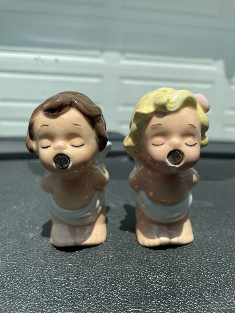 VenmoVintage Westland Angel Cherub Pepper Salt Shakers There are chips around the mouths but hardly noticeable when they are kissing
