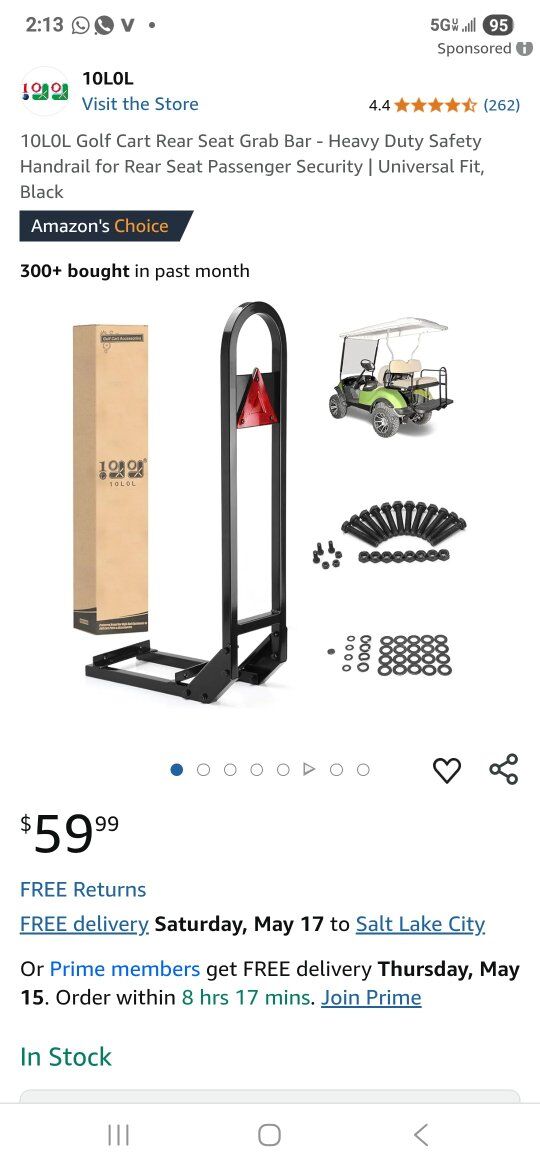 ZelleFor sale, golf cart rear grab bar, fits most carts. New, asking $30. Text 801-949-7634, no emails please.