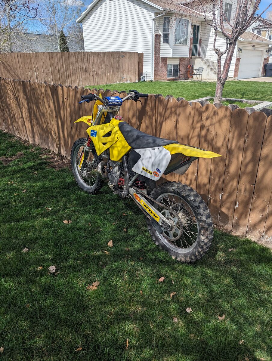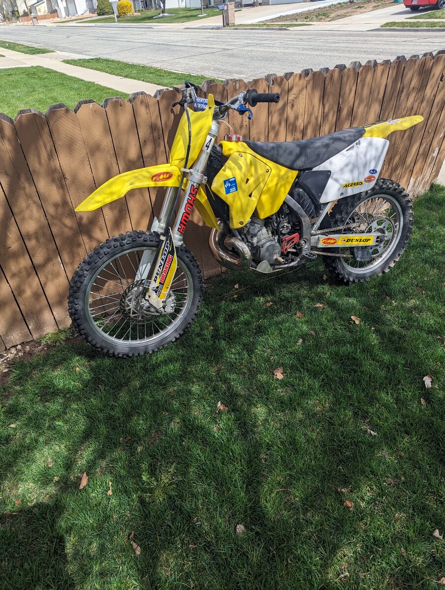 2001 Suzuki rm 250. Super fun bike but Its not ideal for the riding that I do. Runs great, rides great. Let me know if you want to come see it. I also have a free tire I'll throw in. $2,400 Or Best Offer