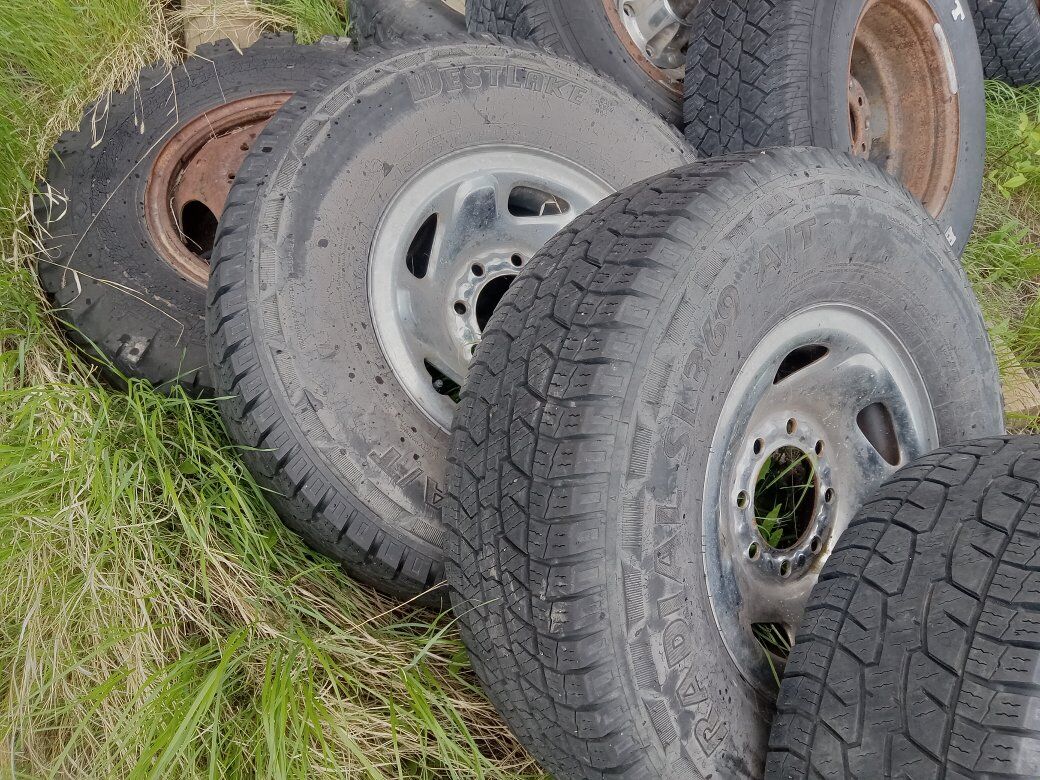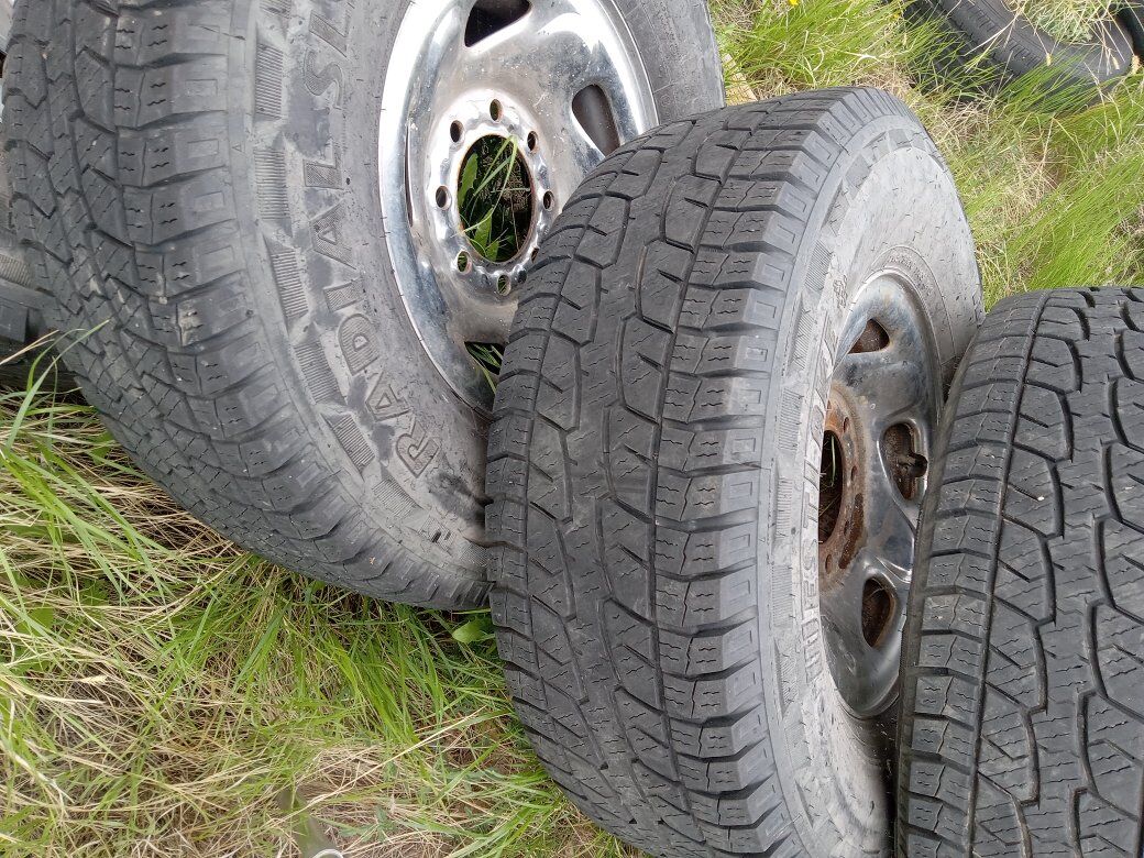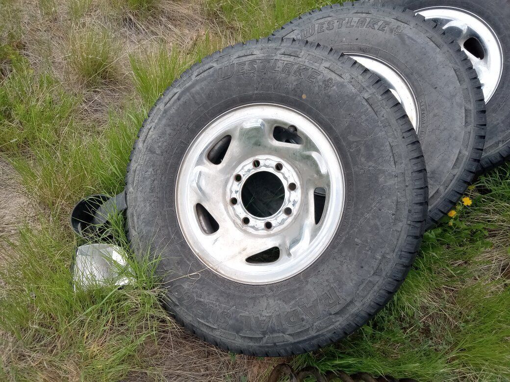 tires and wheels off a 2001 Dodge 3x4 ton 4x4 for sale, size 265/75/R16 in very good shape for $550.00, for more information call Cliff@ 307-677-0749