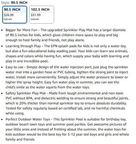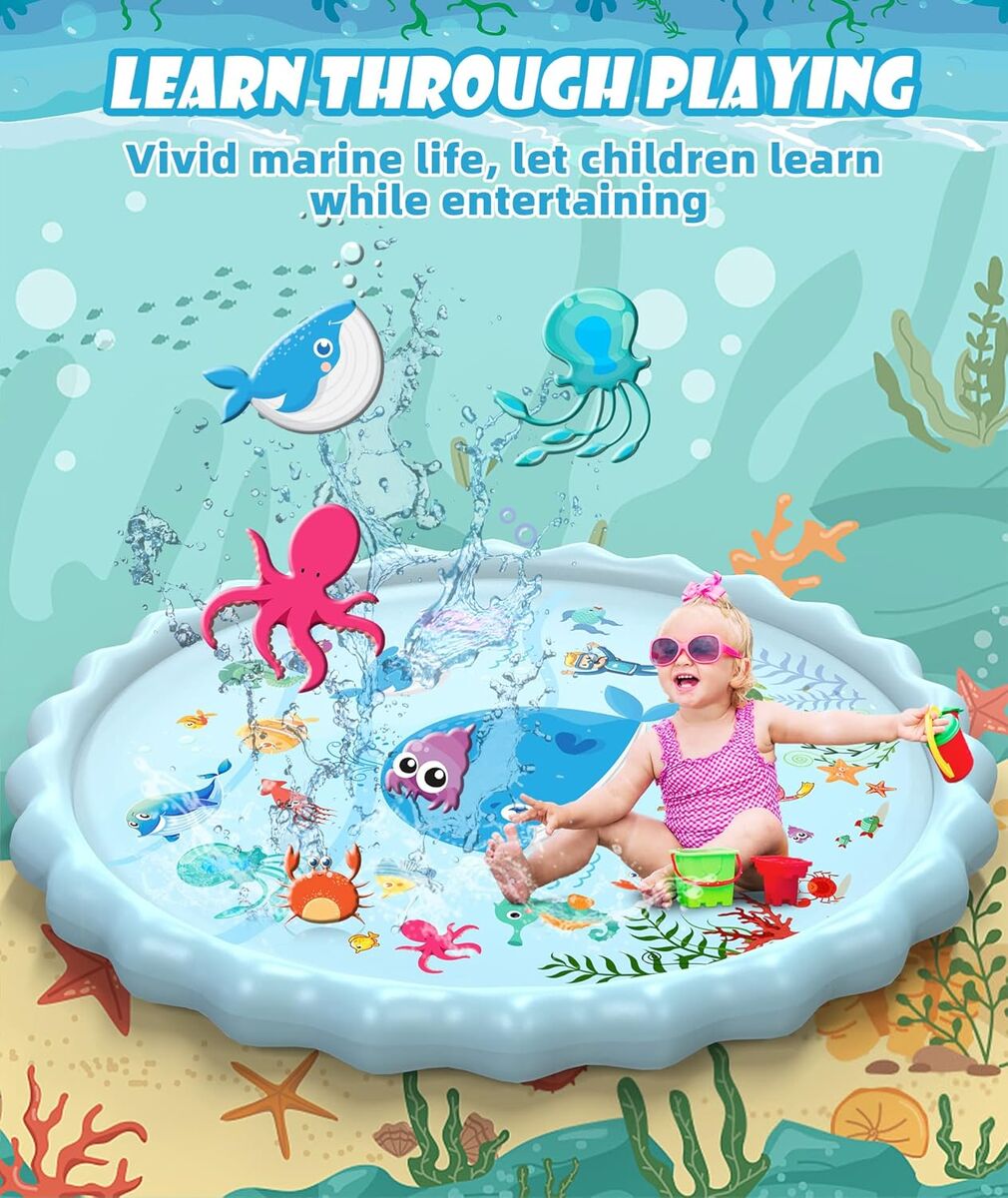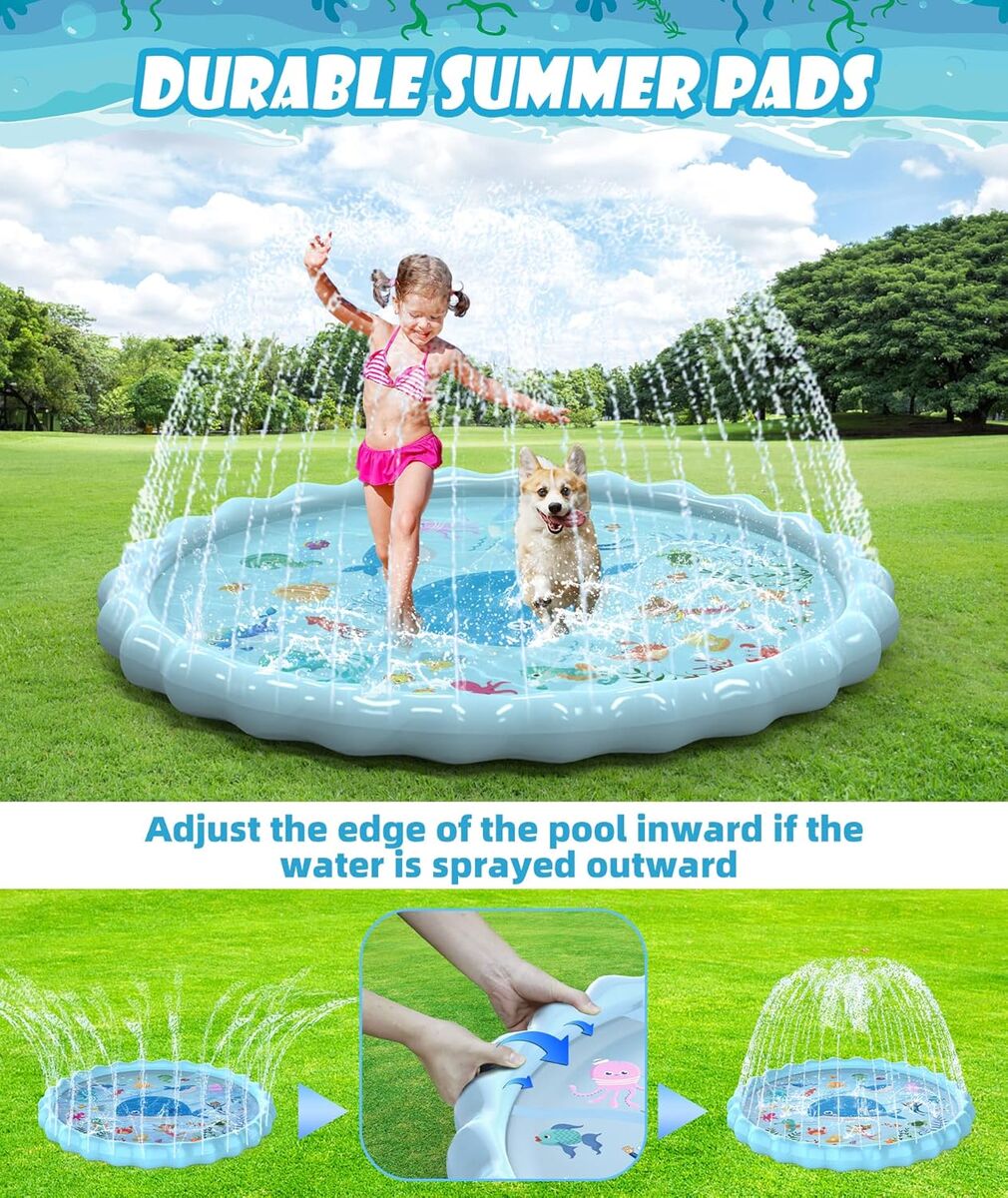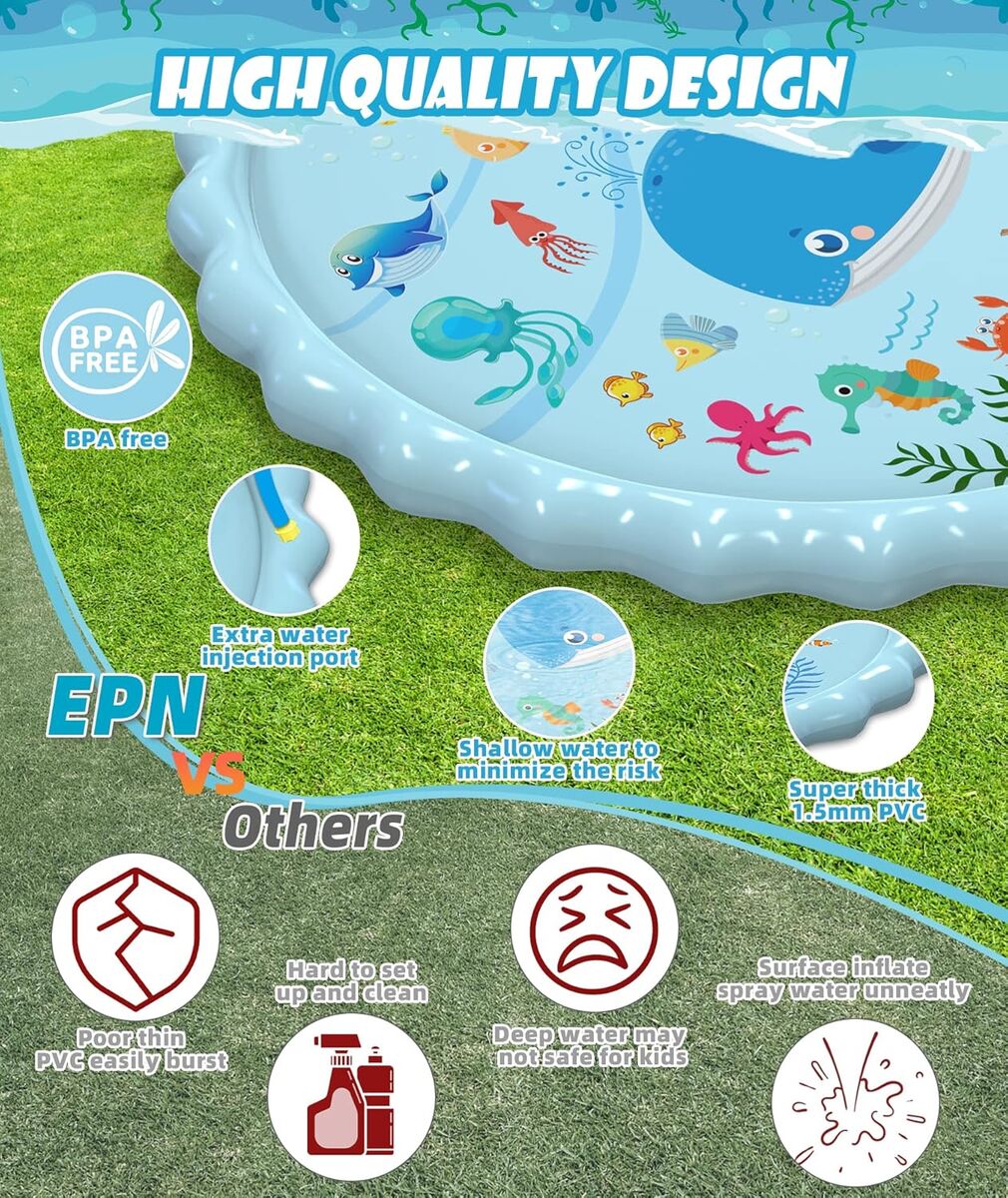 NEW IN BOX! EPN Splash Pad, Extra Large Sprinkler Play Mat Fun for Kids, Thicker Summer Outdoor Water Toys Toddler Pool for 3-12 Years Old Children Boys & Girls (90.5")