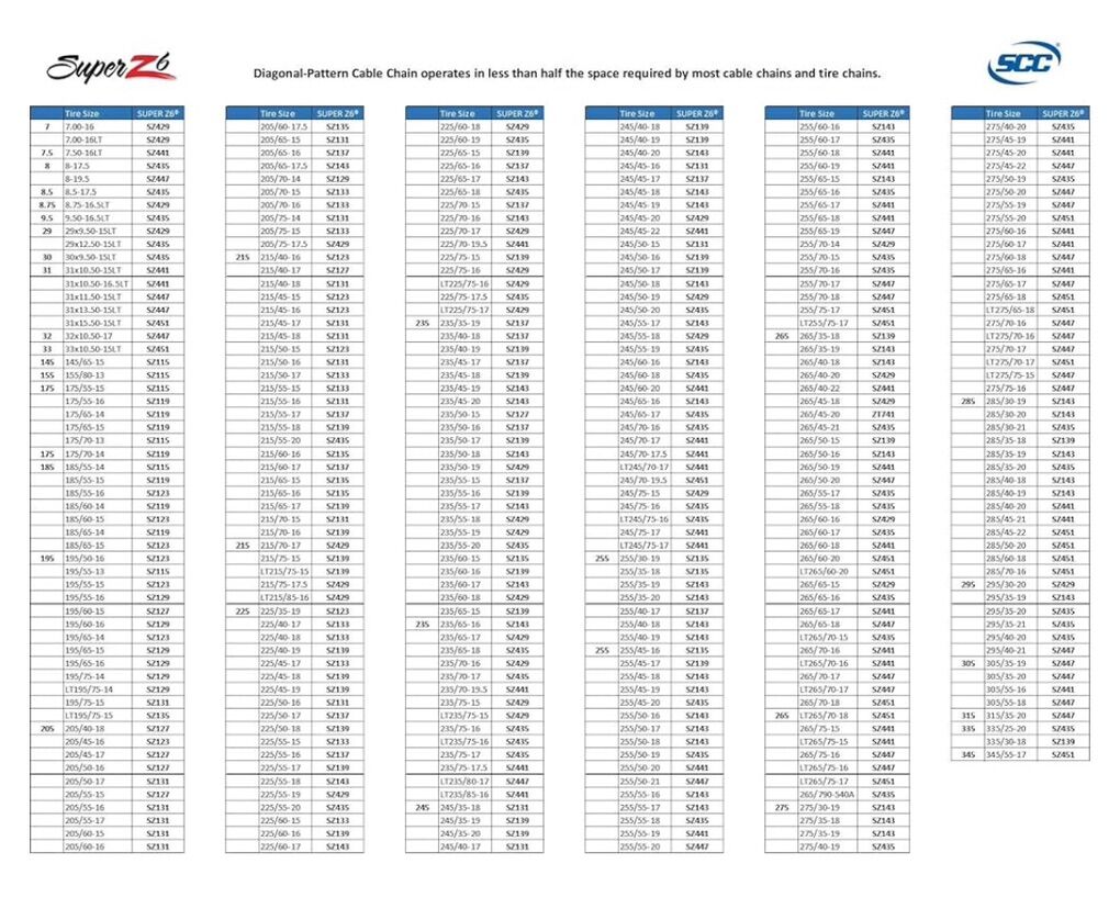 Super Z 6 Compact Cable Tire Snow Chain Set for Cars, Trucks, and SUVs | SZ435