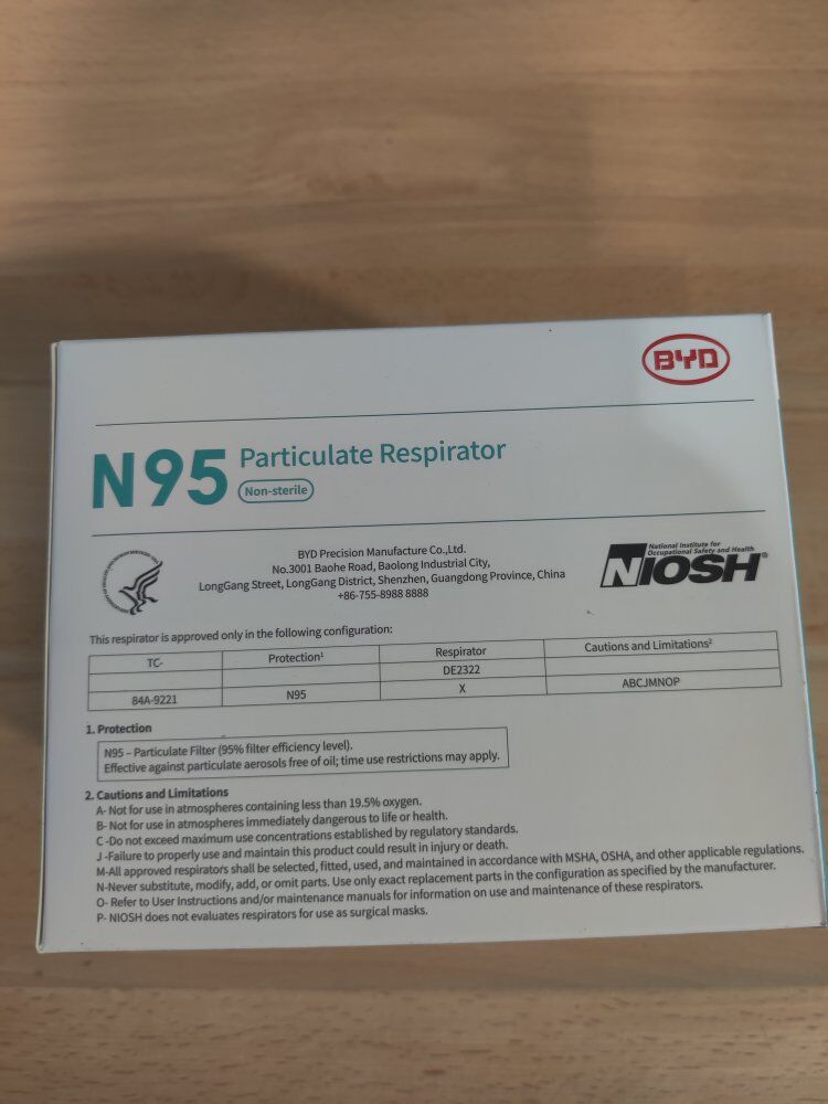 N95 Particulate Respirator Box of 20 Exp: 6/22 Must buy at least 5