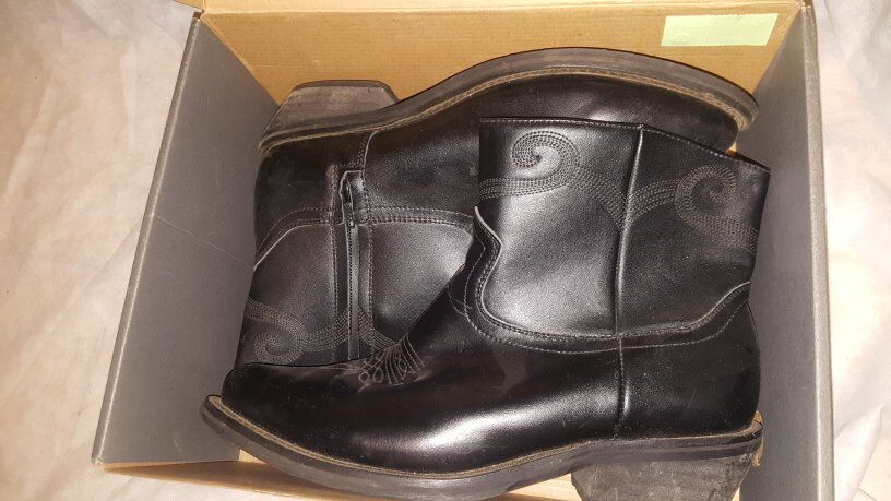 Stylish black leather boots with side zippers.