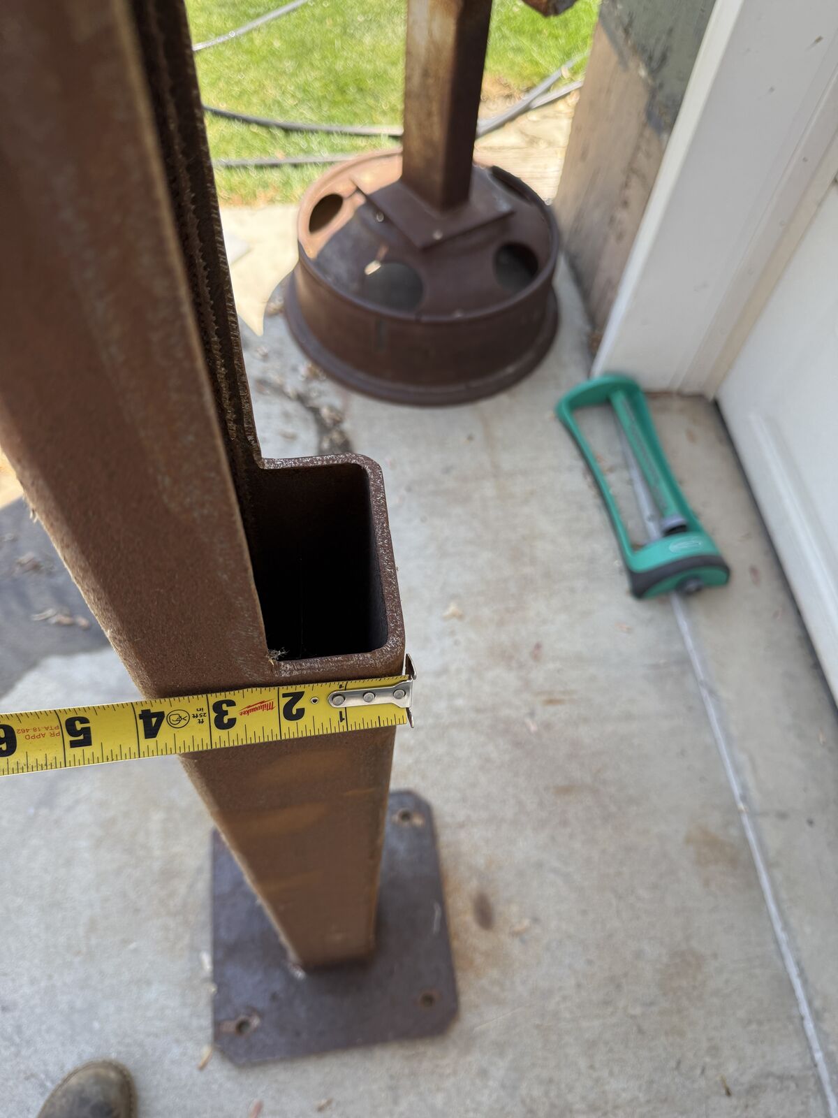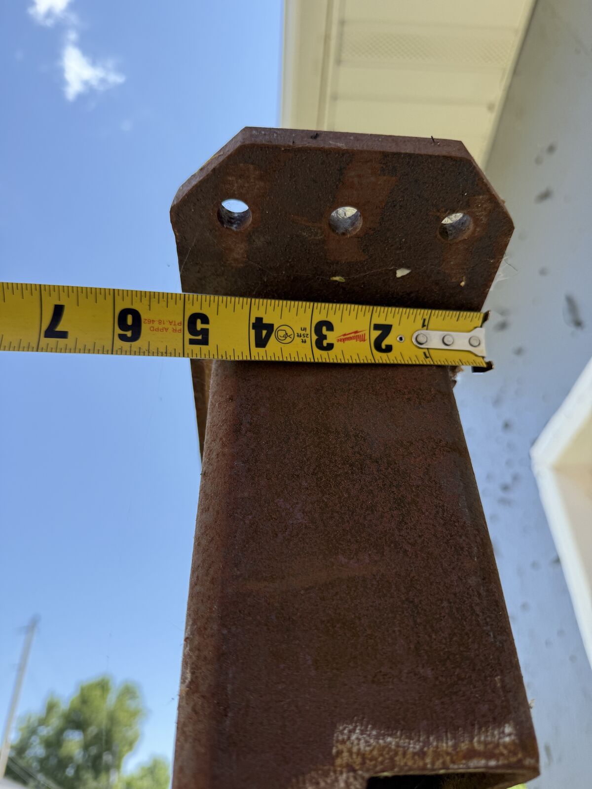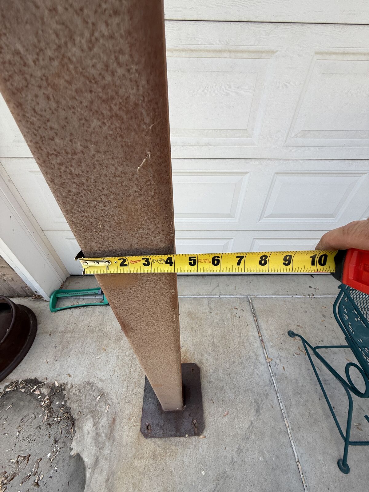 Venmo4" x4" x 3/16" x 87" tall with top plate and bottom plate I have 20 to 30 of these they do have a cut out in them that was done for a clearance issues when originally used. They will still work great for a gazebo, shed, carport, fence post, deck or many other uses. $50 apiece if you want them all $45 each