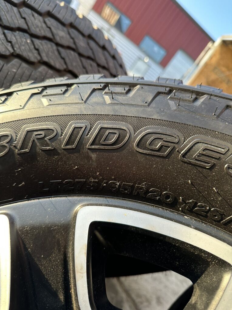2024 Ford F350 platinum stocks & bridgestone tires. Tire size is 275/55r20.