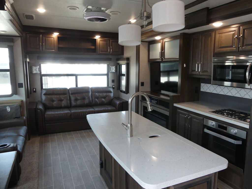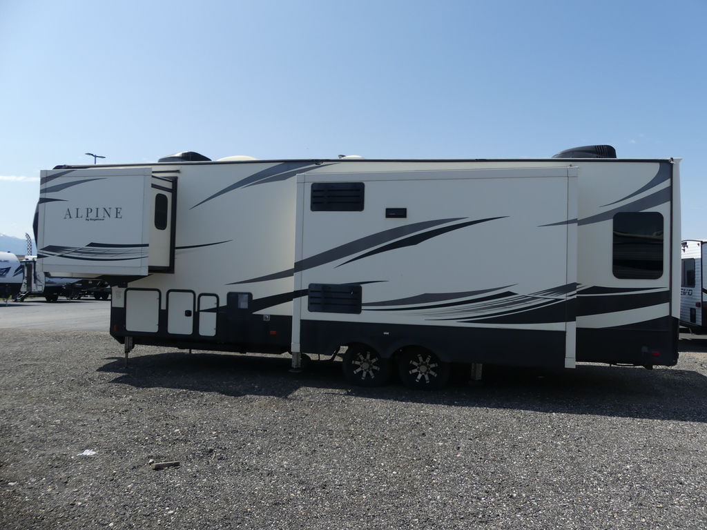 Alpine, Keystone’s premier luxury fifth wheel brand, is designed for a new generation of discriminating campers who are looking for contemporary styling, innovative floorplans and modern amenities. Designed like no other RV in its class, Alpine has a residential feel with high ceilings—including nearly 7’ tall slide-boxes, wider bodies, and panoramic frameless windows. Always ahead of the curve, Alpine truly takes extended-stay camping to new heights.