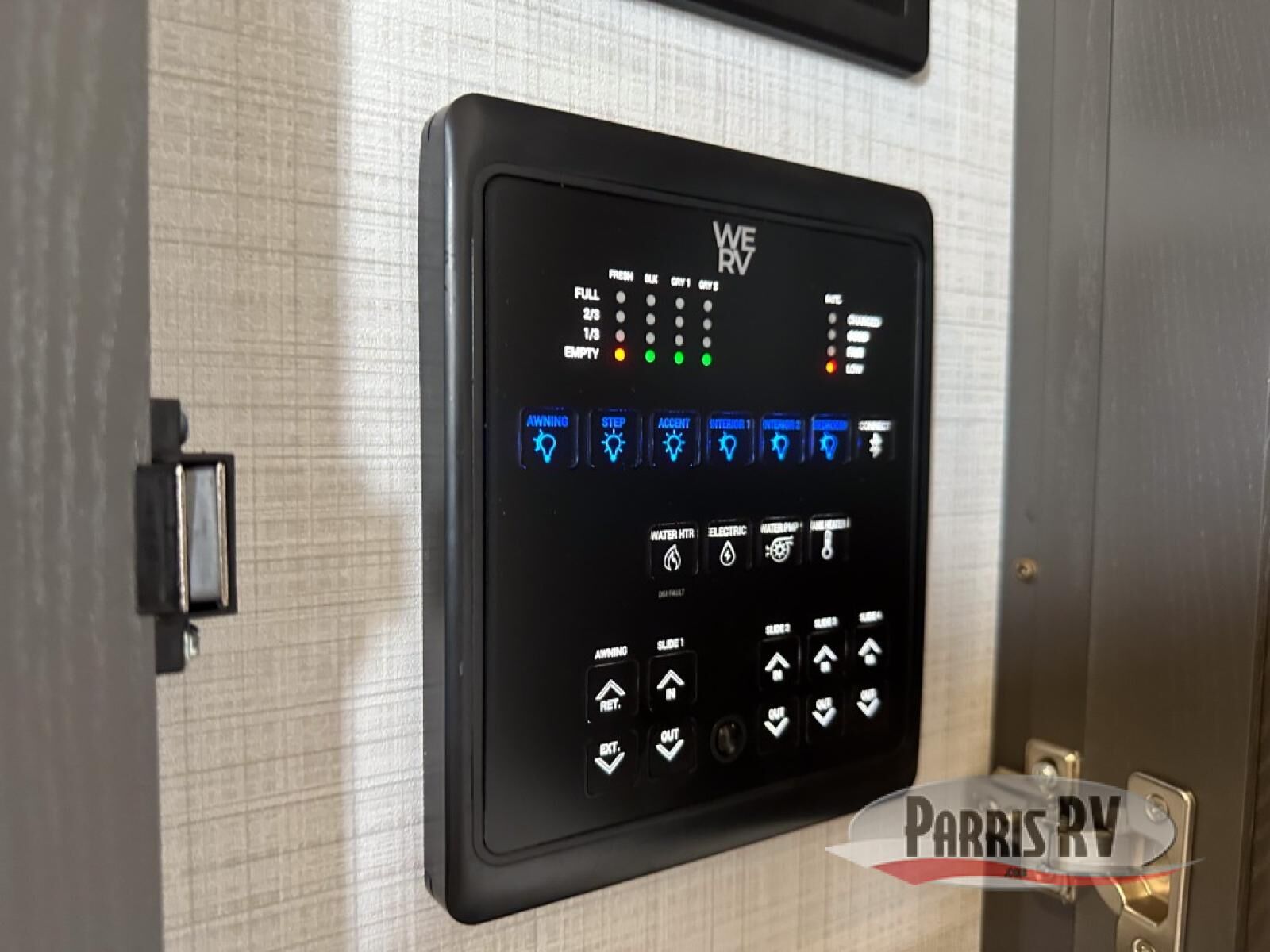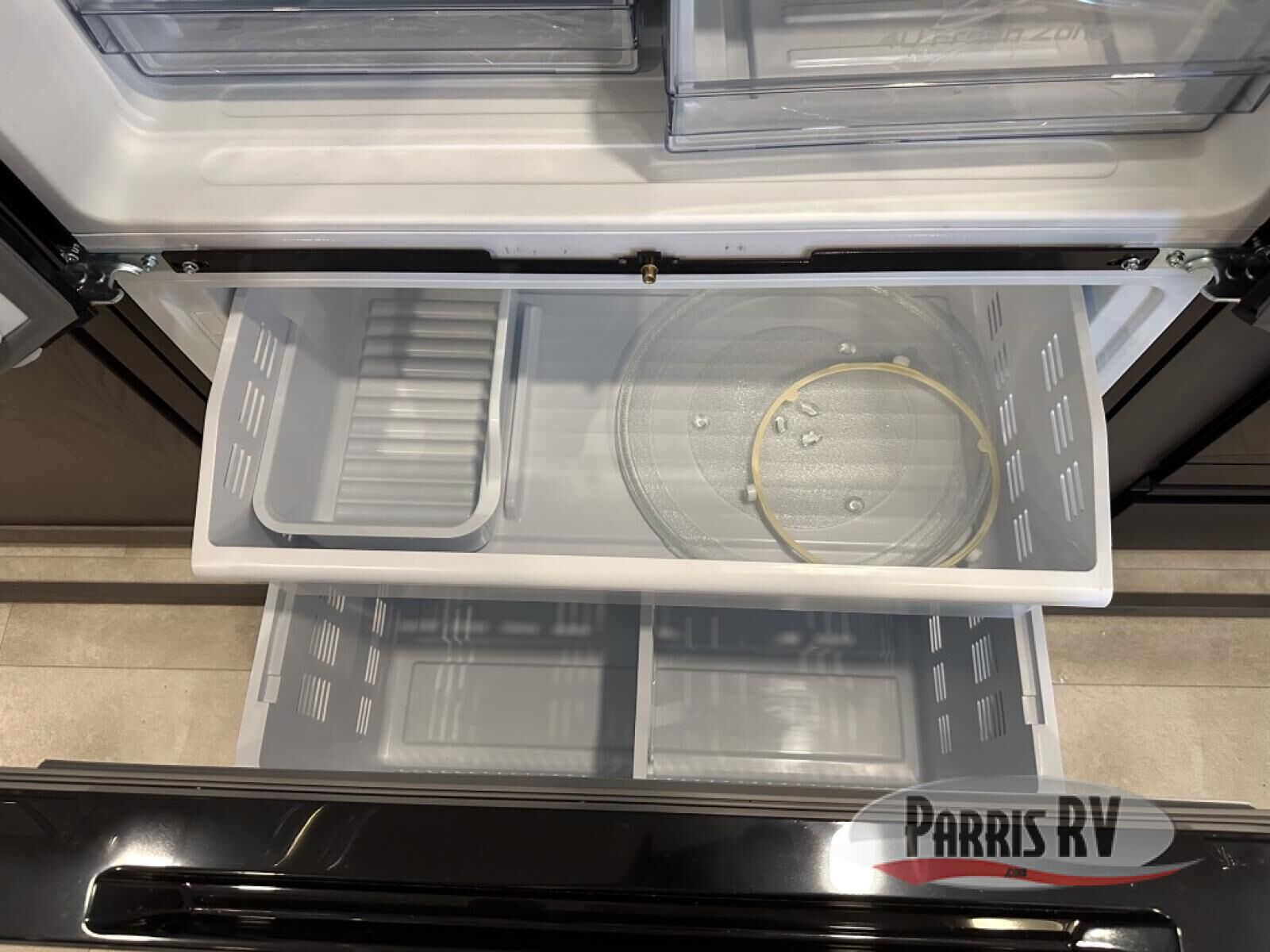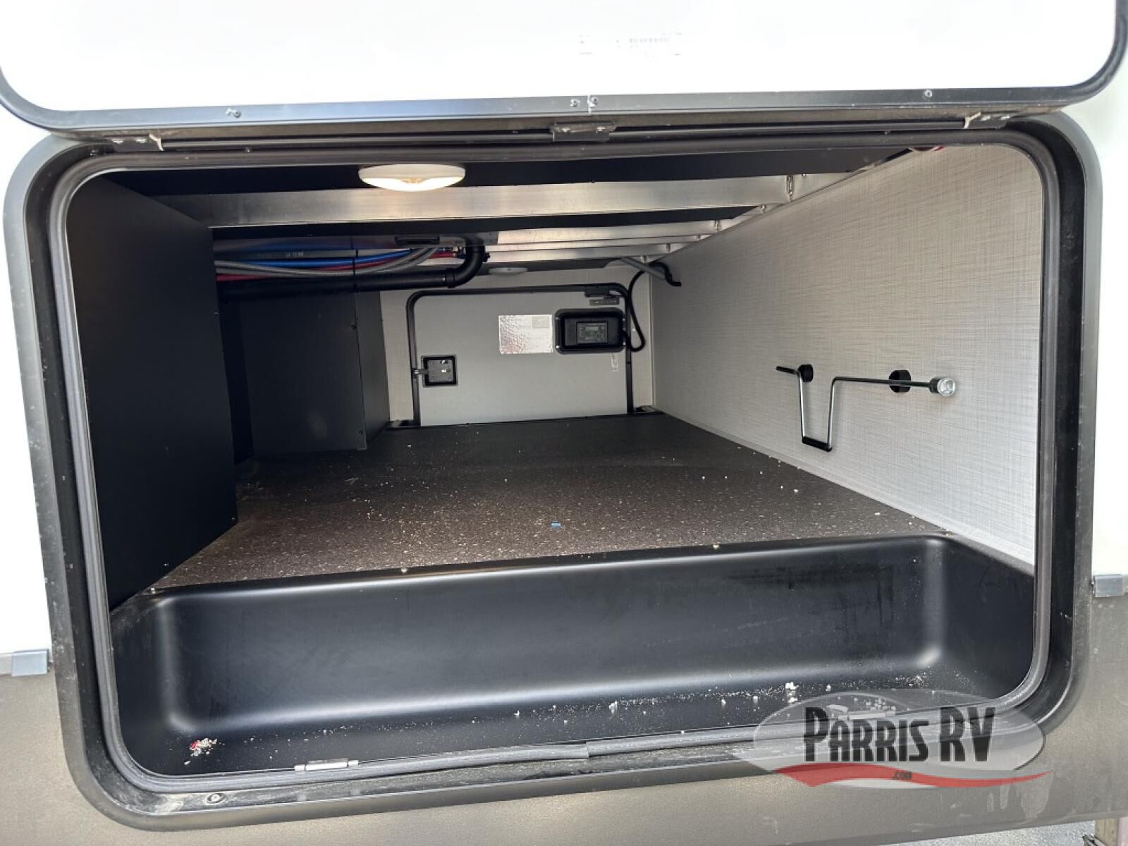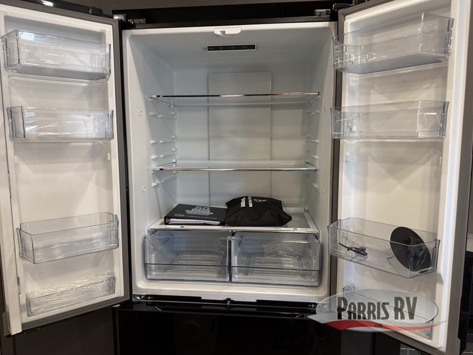 Looking for a fifth wheel to entertain other RVers while at the campgrounds? This is the one that offers seating for up to 10 between the dual opposing hide-a-bed sofa slides and the theater seating in the rear living area. There is a full wall entertainment center here, along with a Smart TV and a fireplace, plus a table with chairs and a bench in the middle kitchen. The cook will have full amenities to keep everyone fed including a 12V refrigerator and a pantry to store lots of food. The full bathroom includes linen storage and a shower with a seat, and the front bedroom offers a slide out queen bed or choose a king option, a dresser and a front wardrobe including shelves. There is even washer and dryer prep if you choose to go full-time!