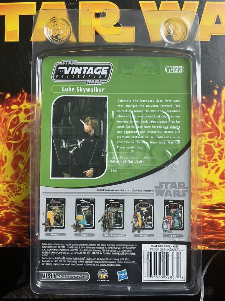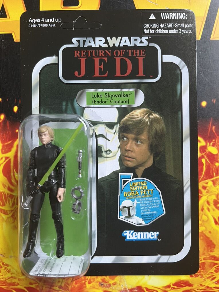 UNPUNCHED AND NEAR MINT! This is a Star Wars The Vintage Collection Luke Skywalker (Endor Capture) VC23 figure from 2010. It is the harder to find version with Boba Fett (Prototype Armor) mail away offer sticker. Comes with official Hasbro Star case (Empire & Rebel symbols as well as Star Wars on back) Never opened. See pictures for details.