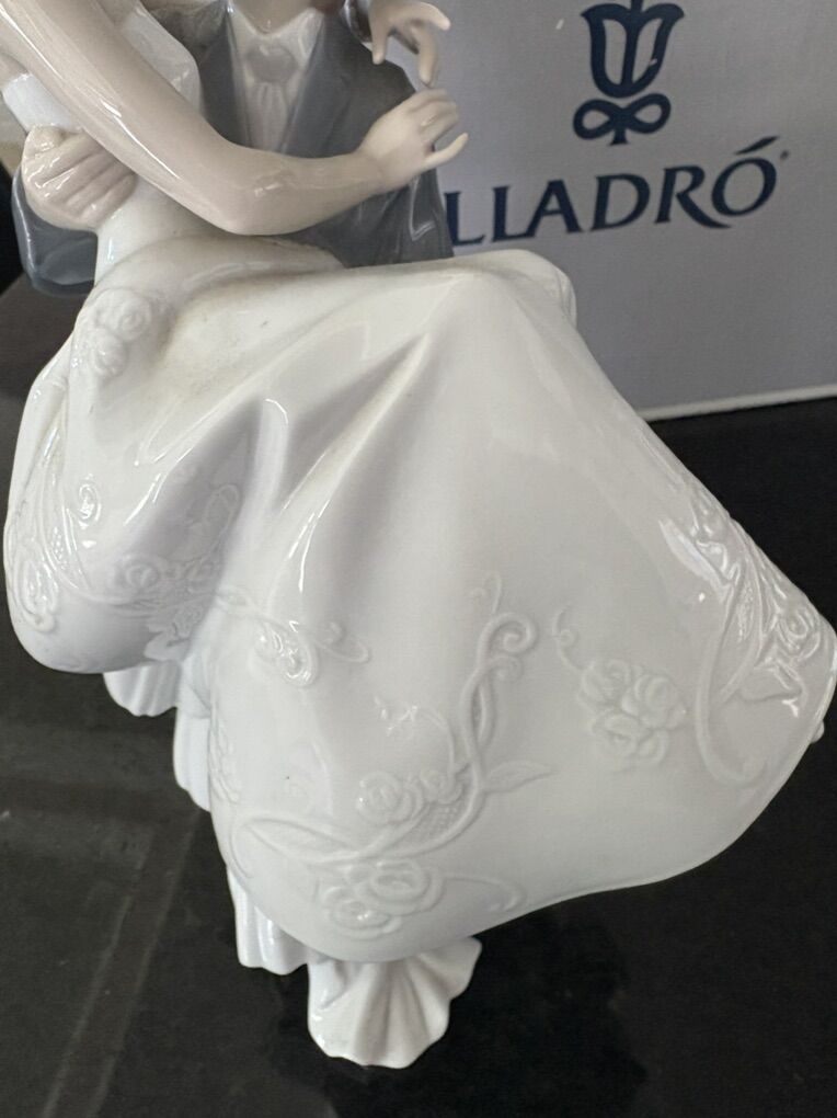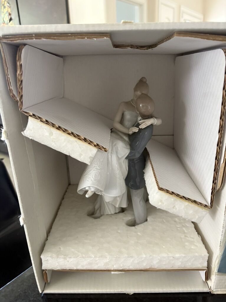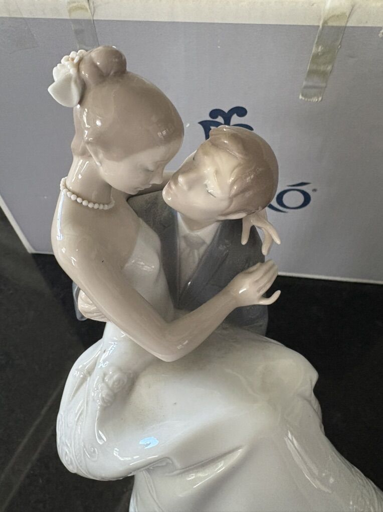 He lifts her and her carefully embroidered dress in his arms. Lladró figurine. Brand new never taken out of box Imk if you would like pics of the one I have it's just in storage. Pristine condition originally around $1,000 Finally, they have started their life together. As per tradition, he carries her in his arms to cross the threshold of their new home, where they hope to make all their dreams come true. This is a piece in gloss porcelain, full of movement and the utmost care for even the smallest detail, particularly the bride's dress, where beautiful embroidery is reproduced.
