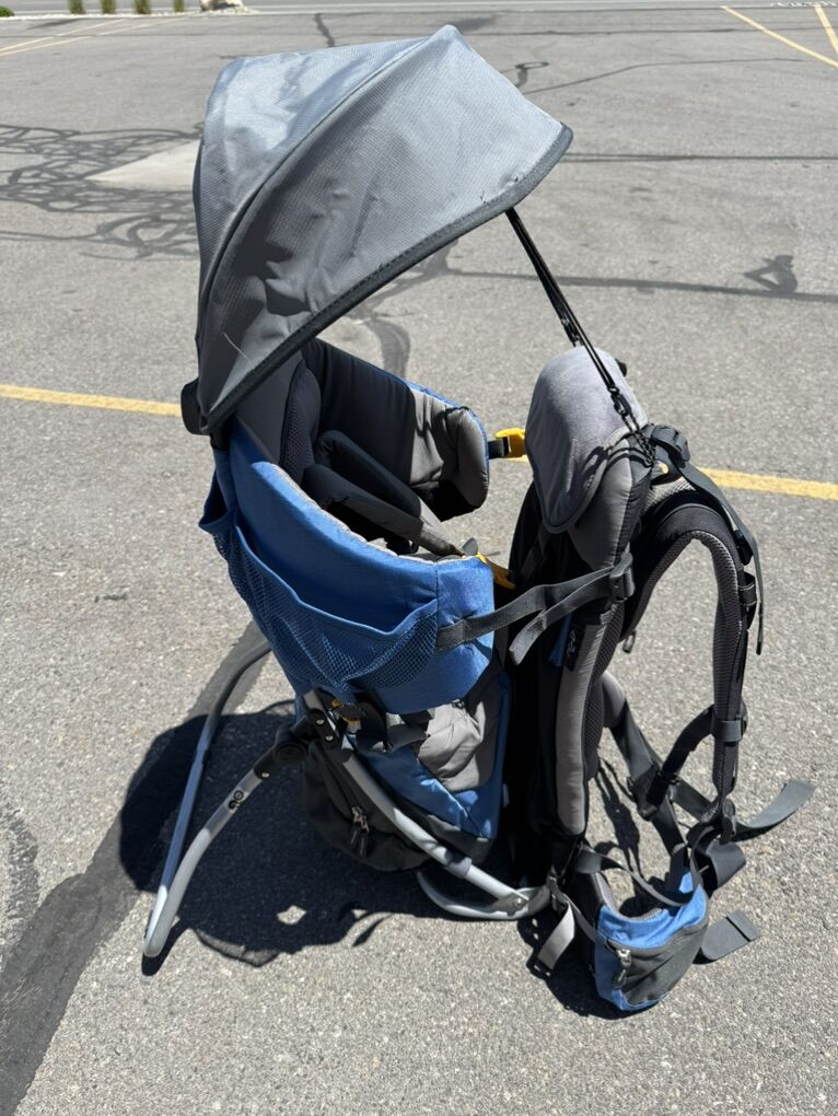 Very lightly used Dueter child carrier with optional sun visor included and rainfly.