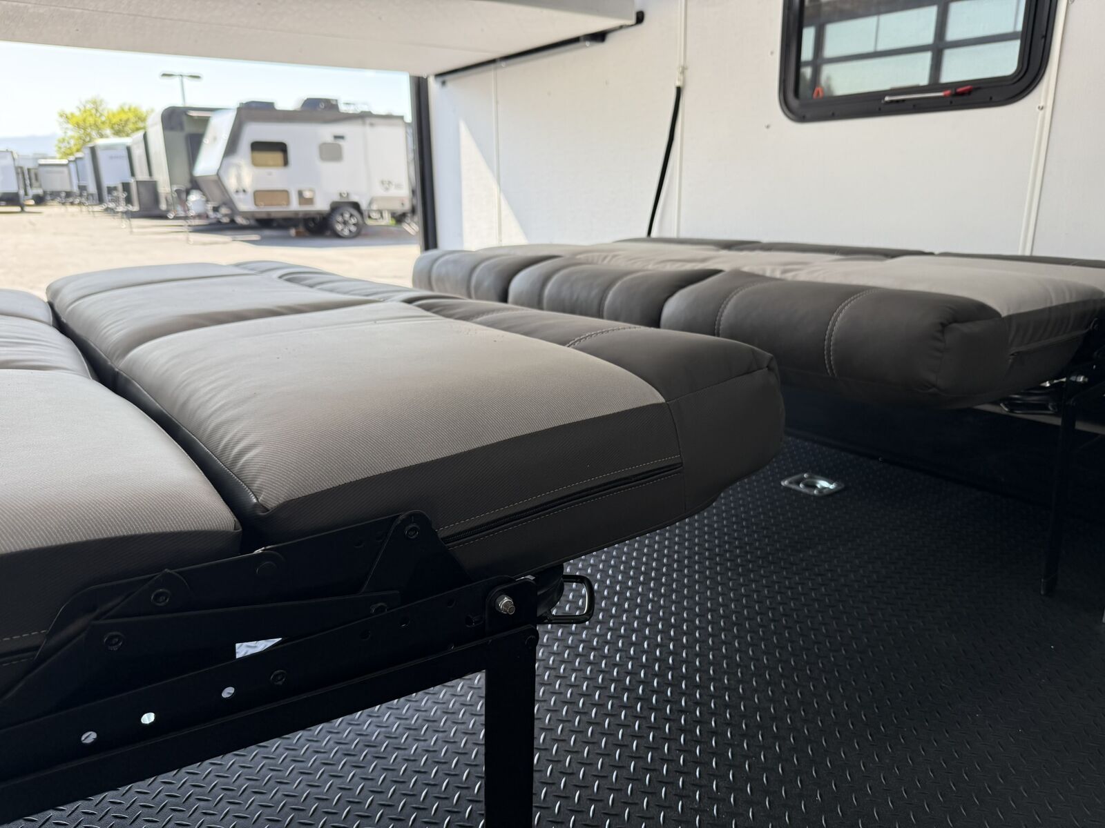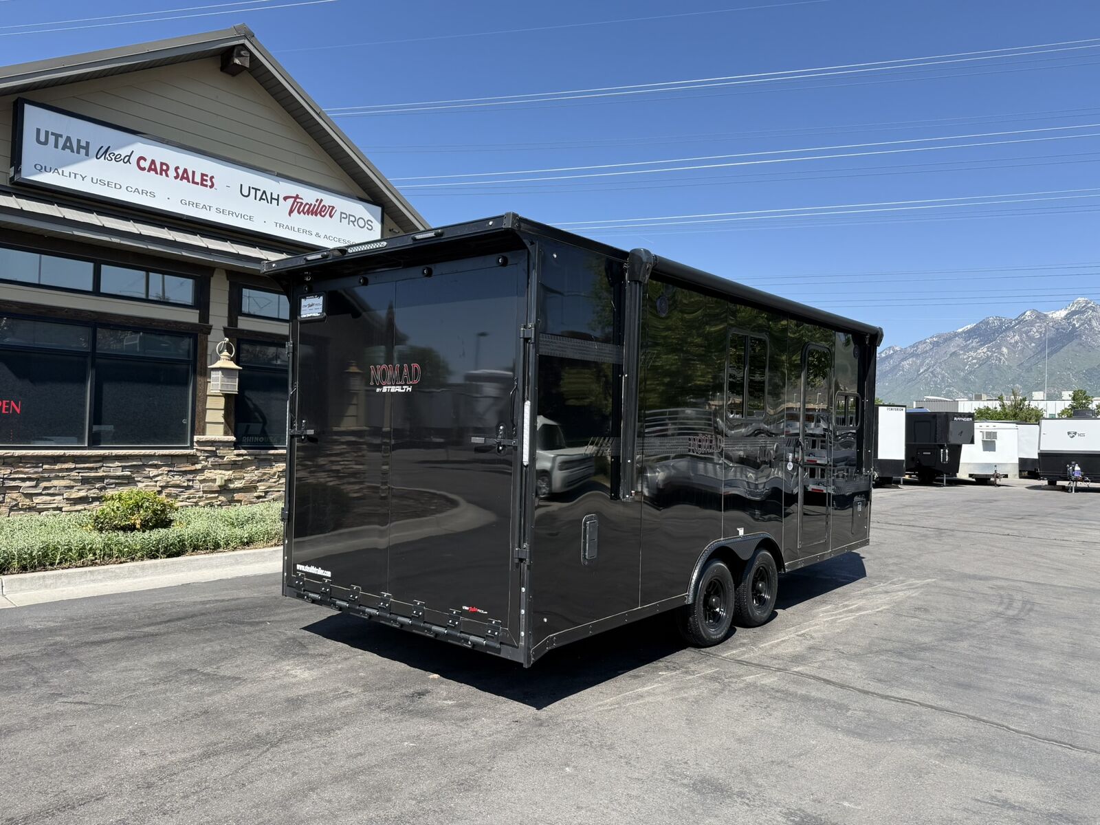 LIMITED TIME $465 A MONTH WITH ZERO DOWN WITH OUR SPECIAL LOCAL CREDIT UNION PARTNER!!! NO PRE-PAYMENT PENALTIES!!! !! NEW NOMAD 20FK MODEL!!! WILL FIT ANY STOCK SIDE BY SIDE UTV!!! 10,400# GVWR/5.2k AXLES!!! FULLY INSULATED!!! HEATING AND A/C!!! STEREO!!! 7FT-6" Interior Height/ 36" Wedge Front 2x6 Tube Steel Main Rails 16" O/C Floor Tube Crossmembers 16" O/C Steel Tube Wall Studs 24" O/C Tube Steel Roof Bows 18" Extended Triple Tube A-Frame Lippert Torsion Axles w/32 Deg Down Start Angle 5200# Axles w/ST235/80R16 Tires (TA4 40" Spread Axles Electric Brakes 2-5/16 Adjustable A-Frame Coupler 5000# Electric A-Frame Tongue Jack 4000# Rear Cableless Ramp Door w/Steel Flap (2) Roof Vent in Living/Garage Area (1) Prep & Wired for A/C - Main A/C only 12V Roof Vent in Bathroom Painted Tongue/Rear Sill Black (1) Pair Rear Stab Jacks Rear Flare w/(2) 12V Loading Lights 48" Beavertail ****PLUMBING**** 46 Gallon Fresh Water Tank (2) 43 Gallon Waste Holding Tank Sewer Hose Storage Compartment Double 20# LP Bottle w/Cover on A-Frame 6 Gallon DSI LP Gas/Electric Water Heater 12V Water Pump City/Gravity Water Fill Hook Up Outside Shower and RV Toilet Bathroom Mirror & Robe Hooks 24x36 Shower w/Shower Curtain & Surround Drop-In Cook Top Large Single Bowl Kitchen Sink Tank and Battery Monitor Panel ****ELECTRICAL**** 7-Way Electrical Plug LED Strip Taillights/Marker Lights 12V Deluxe LED Lighting 45 Amp RV Power Center w/12V Converter 30 Amp Motor base Plug Detachable Twist lock Power Cord Battery Box Only (Battery not included) 110V GFI Receptacle in Kitchen Area (2) 110V Receptacles in Garage Area Dual USB Ports in Kitchen 6 Cubic Foot Refrigerator Microwave Oven 35K BTU Furnace 110V Exterior GFI Receptacle TV Prep Package - Includes: Coax Cable Outlets - Interior & Exterior Omnidirectional TV Antenna UHF/VHF 110V 4FT LED Cove Lights in Living/Garage Area Smoke, CO, & LP Detector & Fire Extinguisher *****INTERIOR***** 3/4" Drymax Floor & 3/8" Wht Vinyl Walls Ploystyrene Foam Insulation-Walls & Ceiling ATP Rubber Floor Covering White Vinyl Ceiling Liner w/Black Cove Molding Black Kitchen L-Base Cabinet w/Laminate C-Top Black Kitchen L-Overhead Cabinet (4) 5000# Recessed D-Rings Large Front Storage Area w/Shelf (1) Pair Black Aluminum Directional Vents ****ROOF**** Seamless Aluminum Flat Top Roof LED Marker Lights Rear Flare w/(2) 12V Loading Lights *****METAL**** .080 Screwless Armor Shield Composite Skin STD Colors:Crystal White, Black, Matte Black Windstar Silver, Victory Red, Pewter, Charcoal 3" Heavy Duty Flat Top Trim 3" Flat Bottom Trim & 6" Barrier Tape All Black Exterior Trim & ATP Fenders 24" Tall Slanted Diamond Plate Stoneguard 24" Tall Diamond Plate along sides at bottom (1) Pair Black Aluminum Directional Vents *****DOORS & WINDOWS**** 26W x 78H Radius Corner Deluxe RV Door w/Window & Screen Aluminum Door Holdback Double Fold Out RV Step 4000# Rear Cableless Ramp Door w/Steel Flap All Black Zinc Coated Door Hardware 24Wx72H Door w/Barlock in Front Storage 30x15 Window in Kitchen Area 30x30 Window in Living/Garage Area 30x22 Egress Window in Living/Garage Area Window Coverings - In Garage Area (Only) ****FINAL***** LED Strip Tailights/Marker Lights 12V Deluxe LED Lightning Black Aluminum Wheels w/Radial Tires & Black Center Caps Recessed Spare Tire Compartment Limited 3 Year Structural Warranty 01-OPT1.952 Platinum Package Includes: Deluxe Stereo Package with: AM/FM/CD/DVD/USB/MP3/WMA Capable Stereo, (4) Hi Output Weatherproof Speakers (2) Interior & (2) Exterior 43" TV w/swivel bracket Rear Hide-A-Screen Solar Port, Stow and Go Bed Lift System: (Includes (1) Queen Mattress Setup) Stock #7SE102601