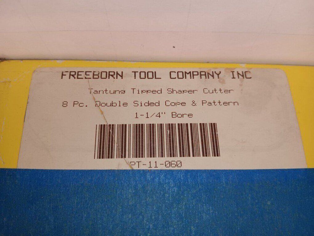 For sale is this 8 piece, double sided, Tantung tipped, Freeborn Tool Cope & Pattern cutter. This cutter is in near new condition and ready to use. These sell for $1300 new. This 8 piece cutter set is built to cut both 1-3/8″ passage doors and 1-3/4″ entry doors simply by changing the center cutters. Standard sets cut 1/4″ x 5/8″ or 1/2 x 5/8″ deep tongue and groove. This double sided cope and pattern sets can be made into window sash sets and dedicated glass panel sets. Number of Cutters 8 Wings per Cutter 3 Diameter 4″ Bore 1-1/4″ Rub Bearing AP-90-044 (2-3/4″) Standard Cutter Rotation Counter Clockwise, Wood Face Down