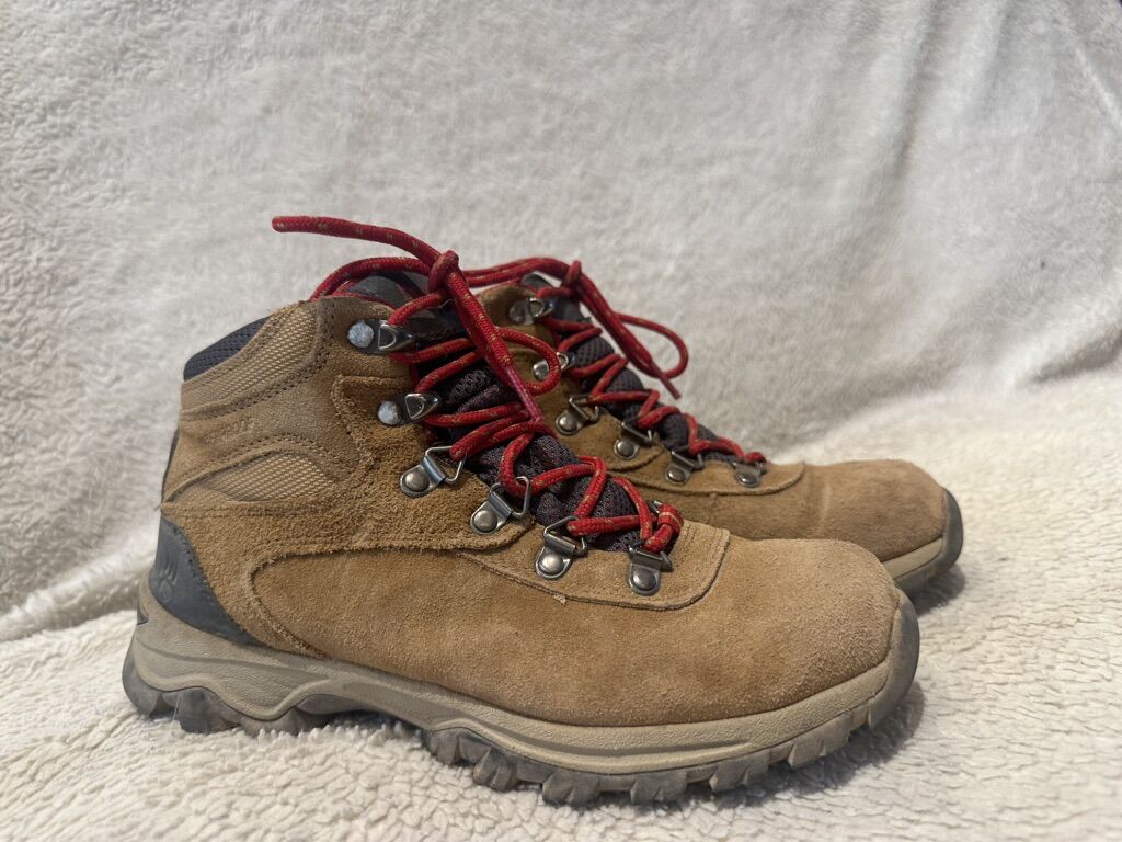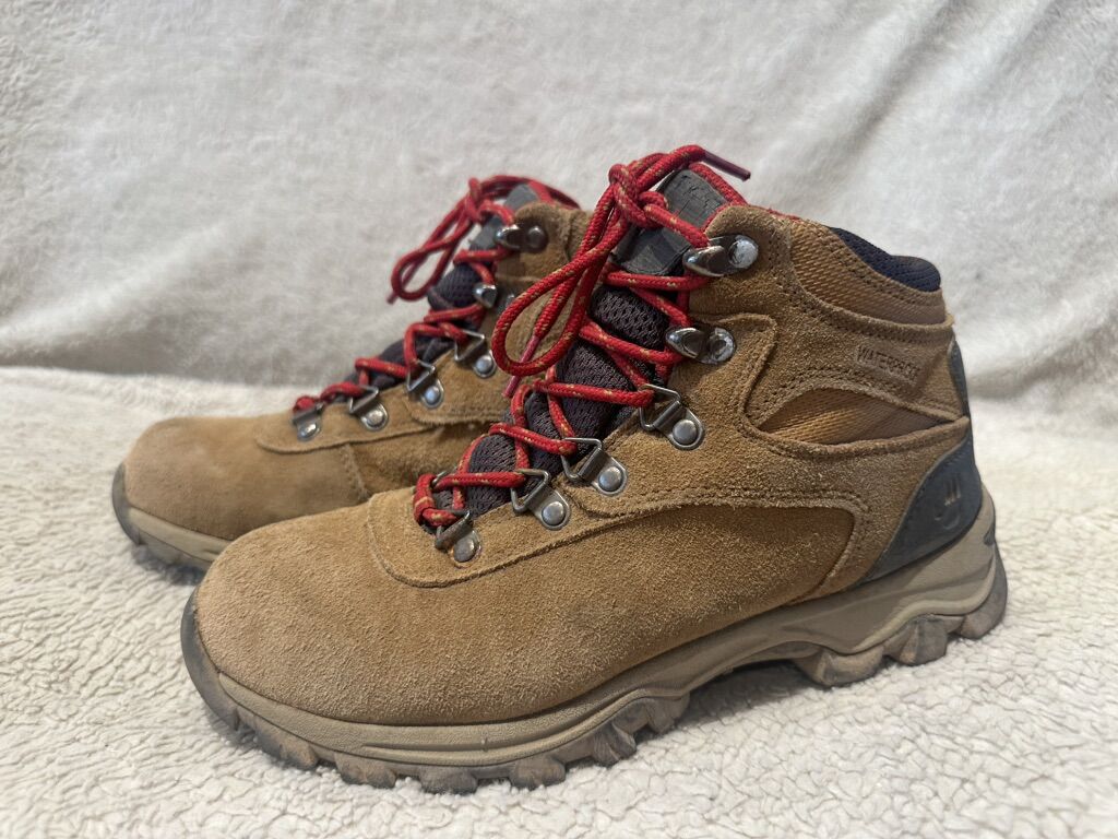 Bearpaw youth size 5 or women’s size 6.5 light brown leather with red laces waterproof mid hiking boots. These are in good condition, see photos for details. I take cash or Venmo, but cash is preferred. Text is best. 801-201-4446. Check out my other ads for additional sizes and styles.