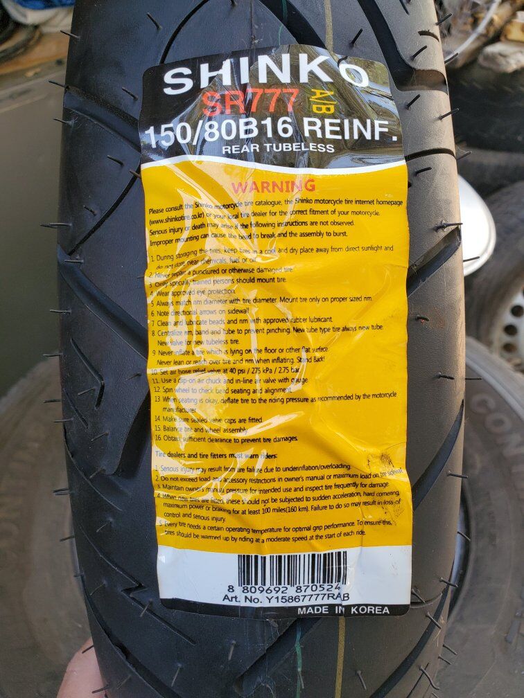 Shinko SR777 HD Black Wall Bias Rear Tire - 150/80B16 77H The Shinko SR777 is a popular tire specifically designed for cruiser motorcycles and is available in a multitude of sizes including HD (Heavy Duty reinforced carcass) to fit many V-Twin and metric cruiser models.