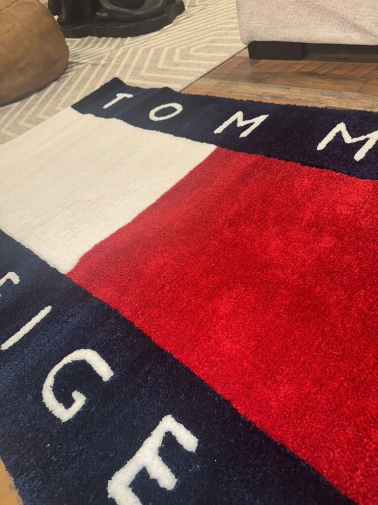 Handmade Tommy Hilfiger Tufted Rug. I made this rug for fun. Very soft and includes backing. Size is 55x38.