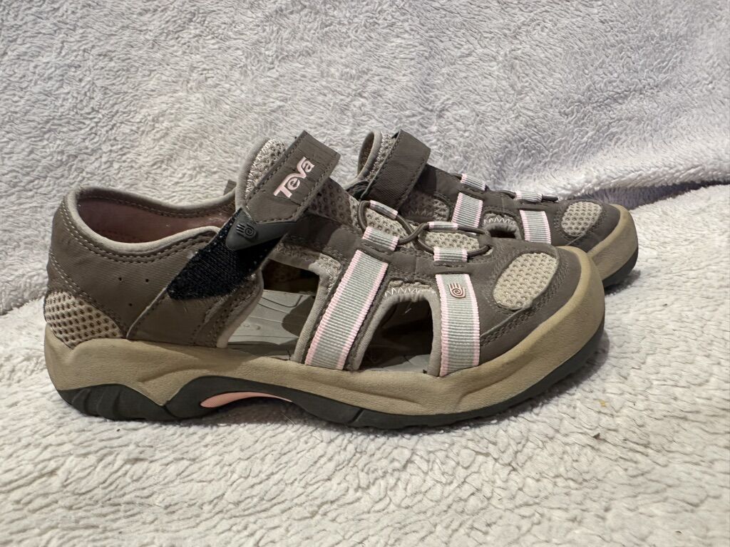 Teva youth size 5 beige/brown with pink trim closed toe hiking sandals. These are in good condition, see photos for details. I take cash or Venmo, but cash is preferred. Text is best. 801-201-4446. Check out my other ads for additional sizes and styles.