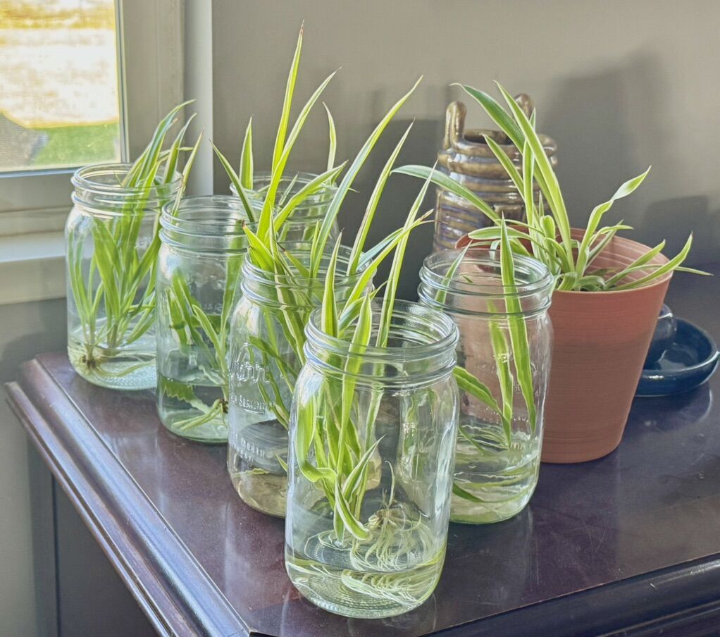 I have these awesome healthy, Spider plants ready for their new home. You can see from the glass quart jars they have an awesome white root system ready for dirt and they are long and healthy. How many do you want?
