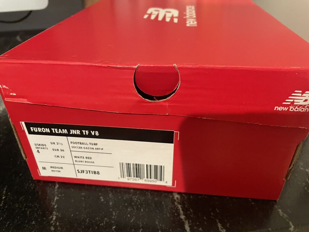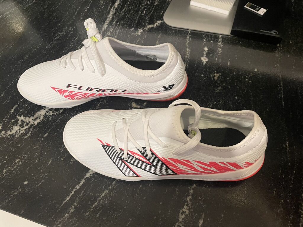 ZelleNew Balance Furon Team JNR TF V8 indoor soccer shoes. Never worn, brand new in box.
