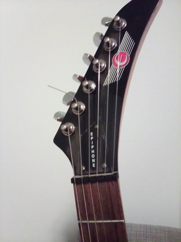 2001 Epiphone Slasher made in Korea one of only 800 made real rosewood fretboard low action, plays really easily the blue is beautiful in person