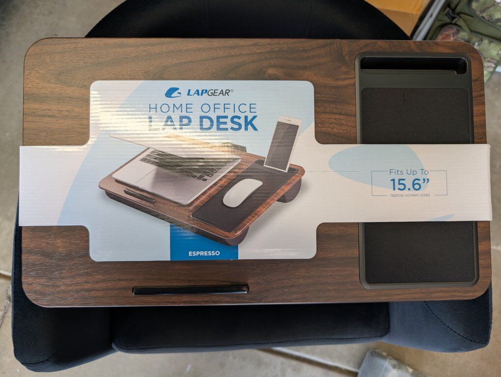 VenmoBrand New LapGear brand home office lap desk in espresso wood finish with built in phone holder and mouse pad. Fits laptops up to 15.6 inches and has nice micro-bead cushions on the bottom to rest comfortably on your lap. Super nice and lightweight. Only asking $25. Text if interested 801-903-8337