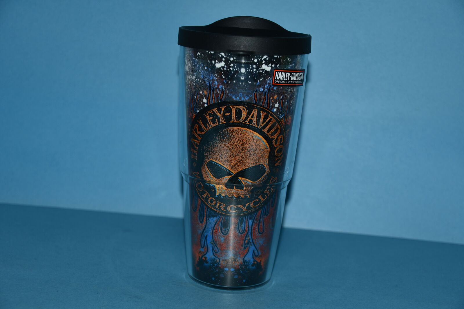 This HARLEY DAVIDSON MOTORCYCLES 24 oz. TERVIS TUMBER is CLEAN. It has DOUBLE WALL INSULATION. Our home is smoke free. Questions??? Please ask. We are located in Plain City. Cash only please.