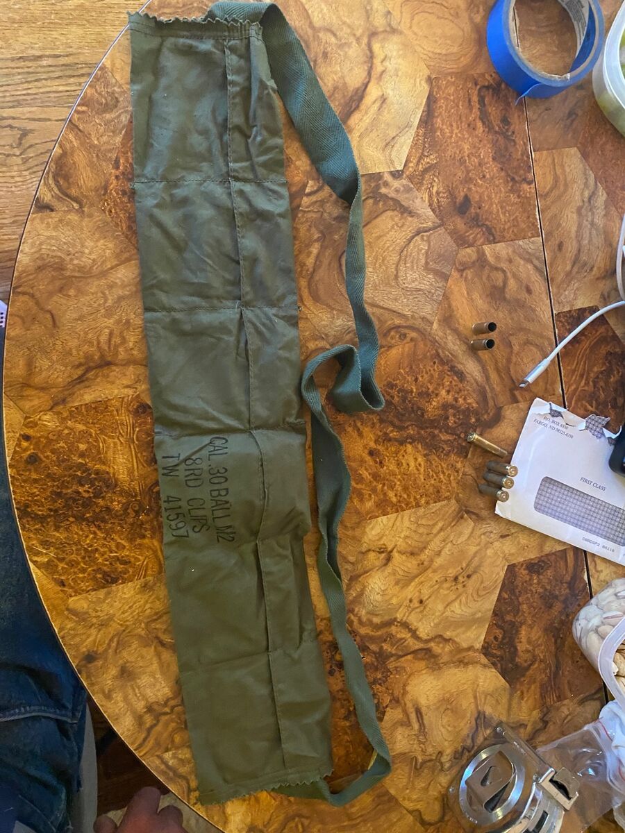 PayPalhave full bandolier 6 clips with 8 rounds 48 rounds total .30 ball M2 8 round clips w/paper sleeves $70. 2- 8 round clips $10 each with or w/out other bandolier or just the bandolier $5. thats 64 rounds total. all original. make offer on all or part or trade. tex if interested