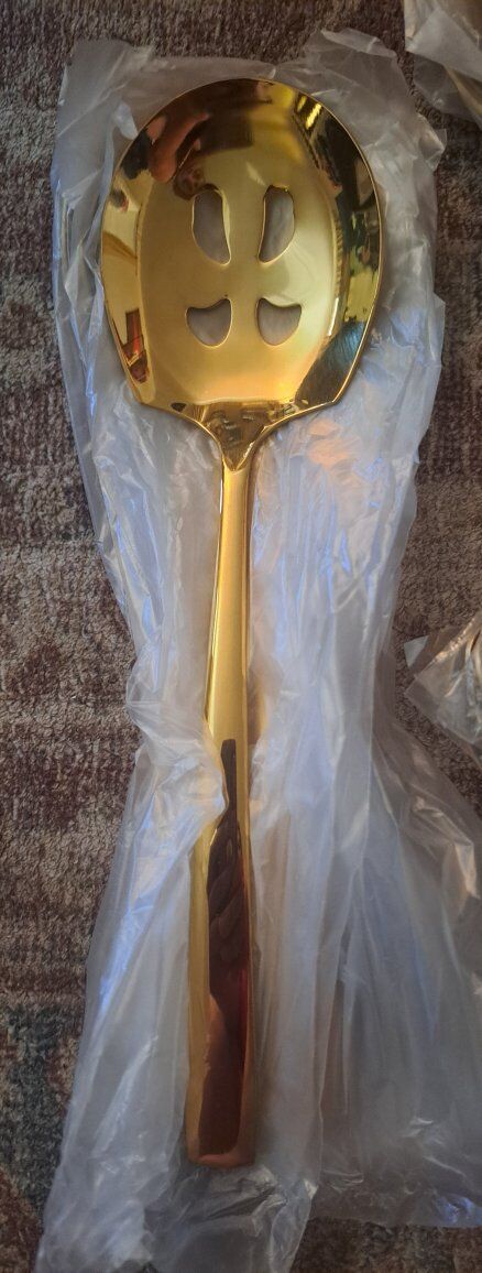 SERVING SPOONS: 4 spoons and 4 slotted spoons, LayHyand brand New. $40 for all 28 pieces Text is best