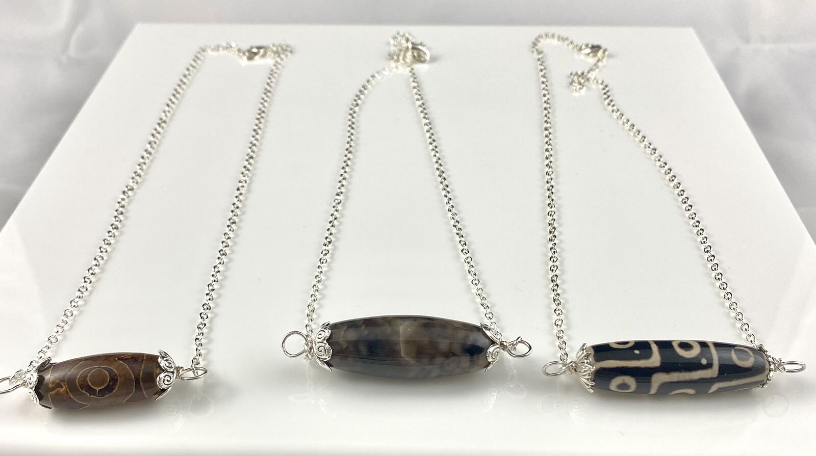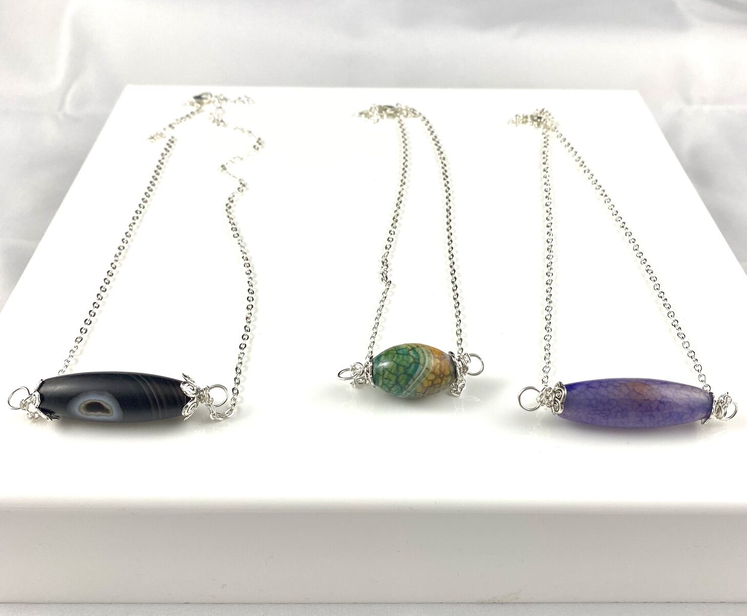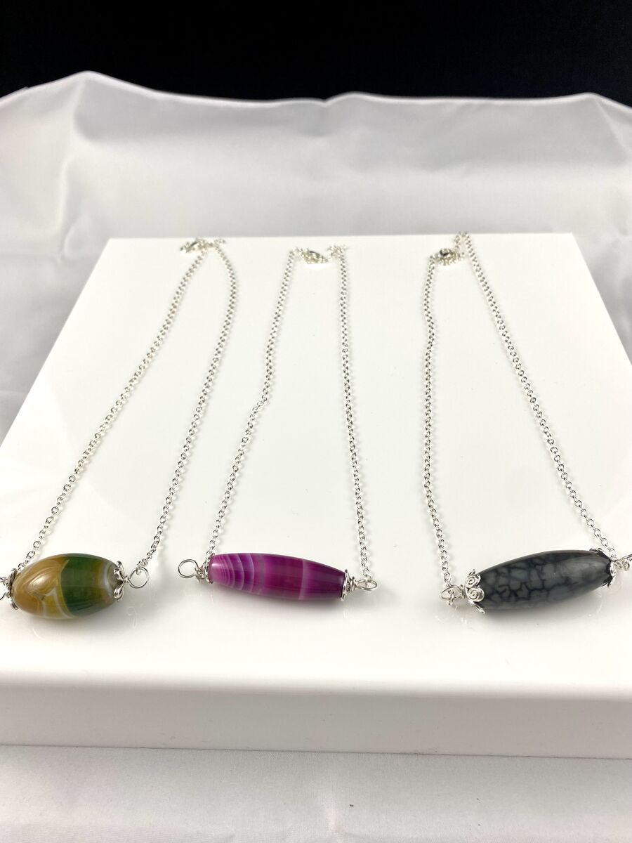 NEW - Beautiful Natural Gemstone Column Pendants On A Silver Plated Chain - Your Choice - C PIX. These are all beautiful and unique. Just let me know which ones you'd like.