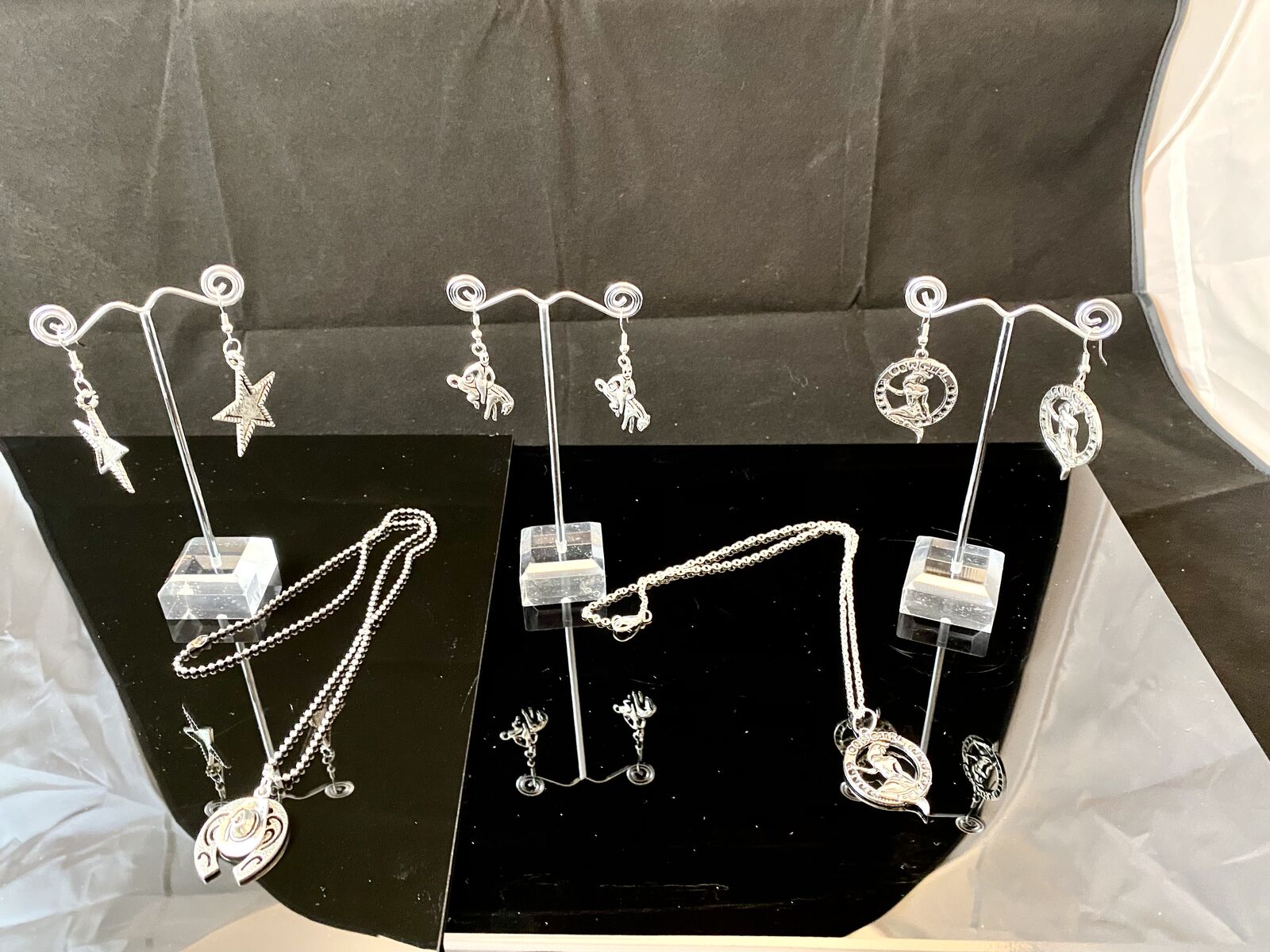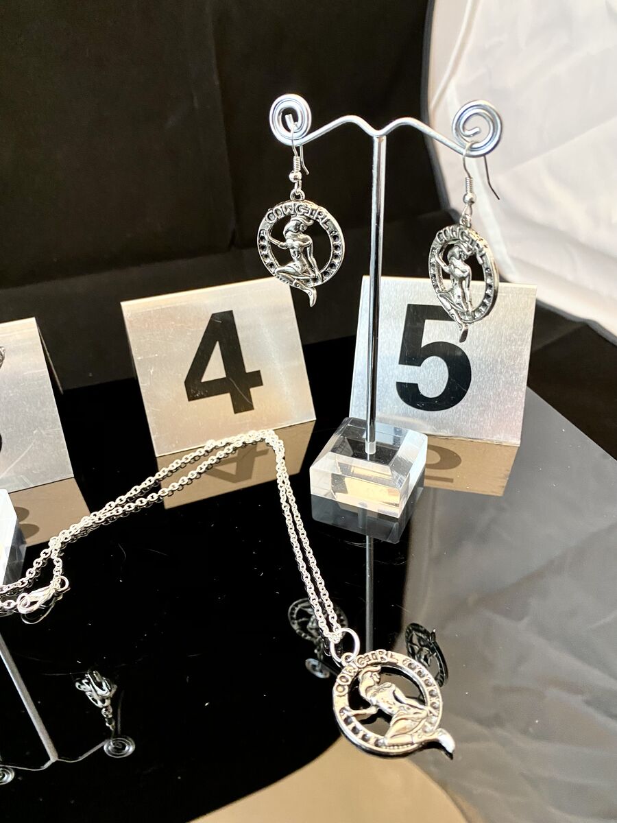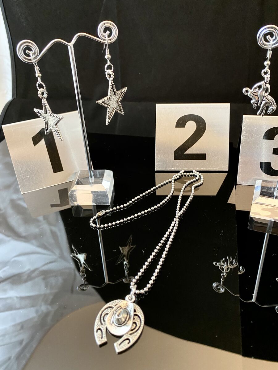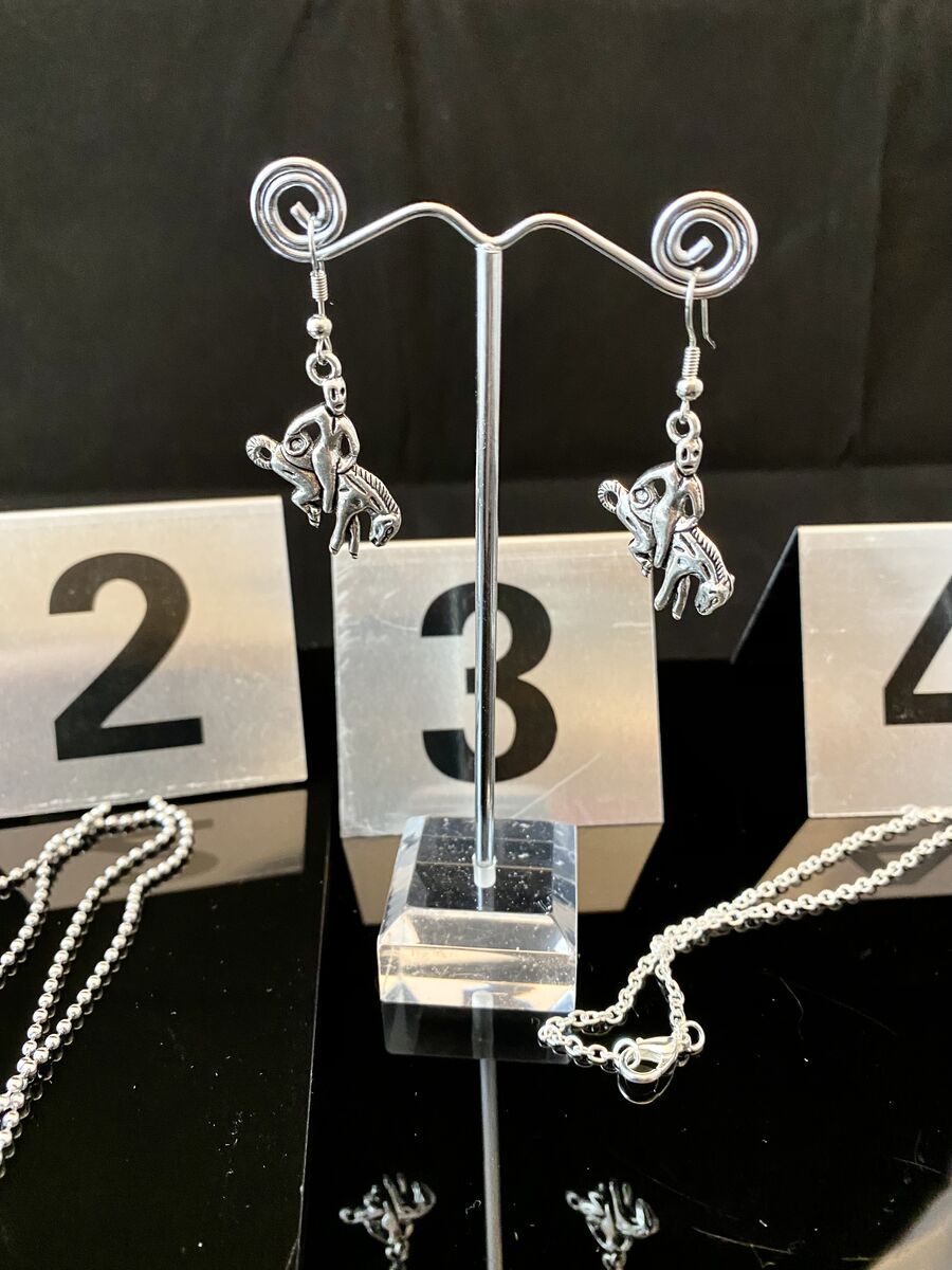 NEW - Cowgirl Up! Fun Necklaces and Earrings - Horseshoe Hat Star Bronco Horse Cowgirl - See Photos. The horseshoe/hat necklace includes an approximate 19 ball and chain necklace. The Cowgirl Necklace is on an approximate 18 silver plated chain.