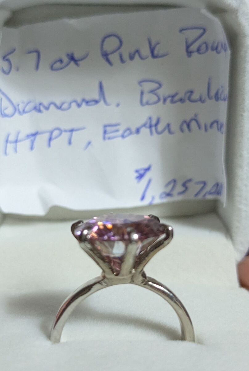 5.7CT HTPT Earth Mined Pink Diamond Ring. Exquisite cut and clarity. Set in high quality sterling silver.