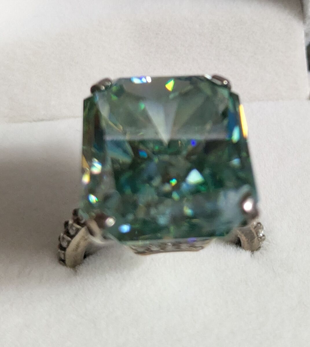 35 CT HTPT Blue Diamond Ring. Earth mined and set in quality Sterling silver. Earth Mined diamond put through High heat and pressure for color and clarity.