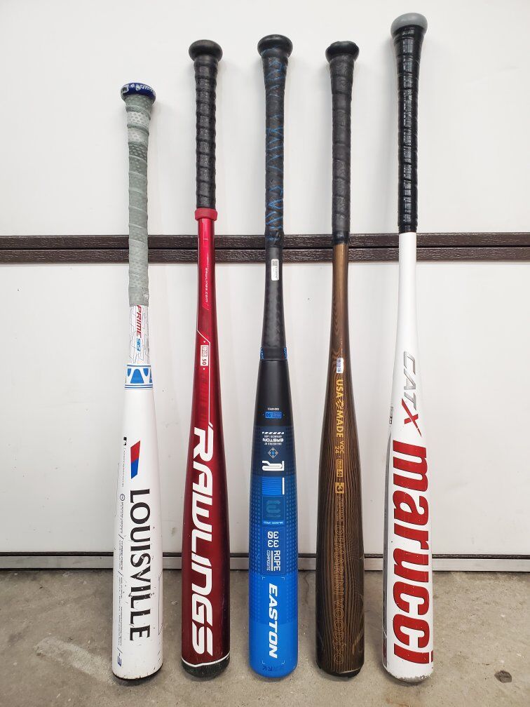 33" Rawlings 5150 alloy - $40 33" Easton Rope composite (practically new) - $80 33" 2024 Demarini Voodoo One 33/30 $110