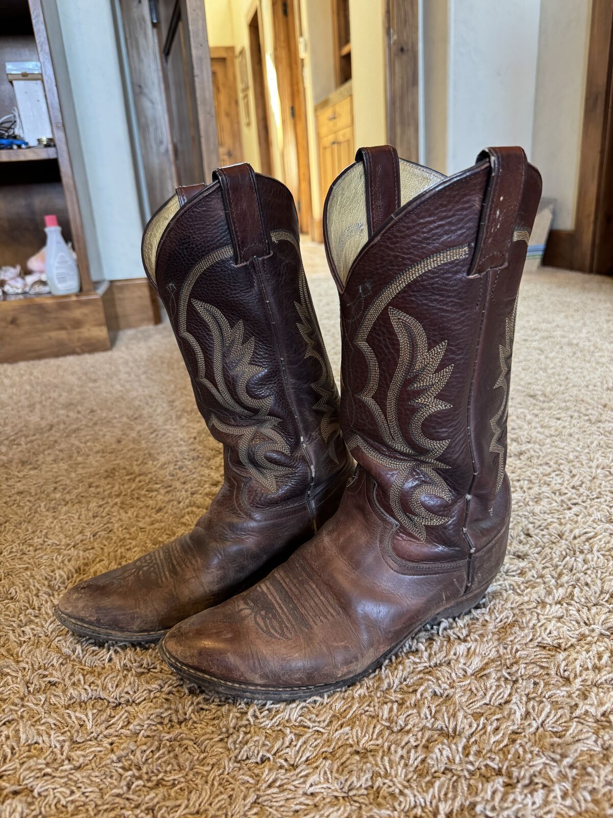 CashAppI have a pair of men's cowboy boots. Normal wear, but still have a lot of life left in them. Justin size 8.5D