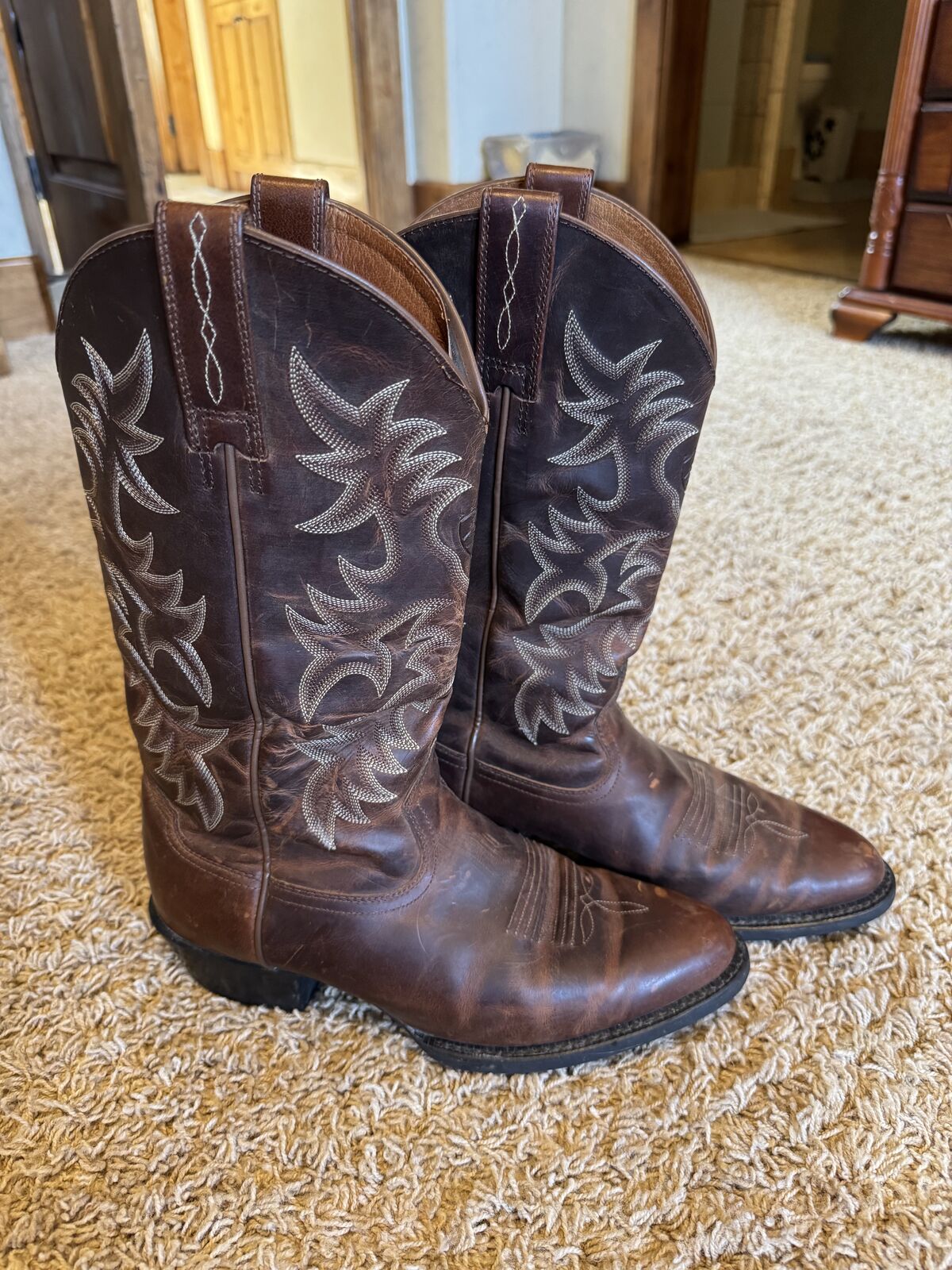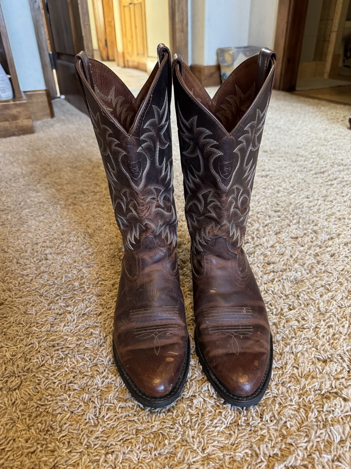 Venmohave a pair of mens Ariat cowboy boots. They are size 8EE and are in great condition still. You're more than welcome to take a look at them or try them on to make sure they fit.