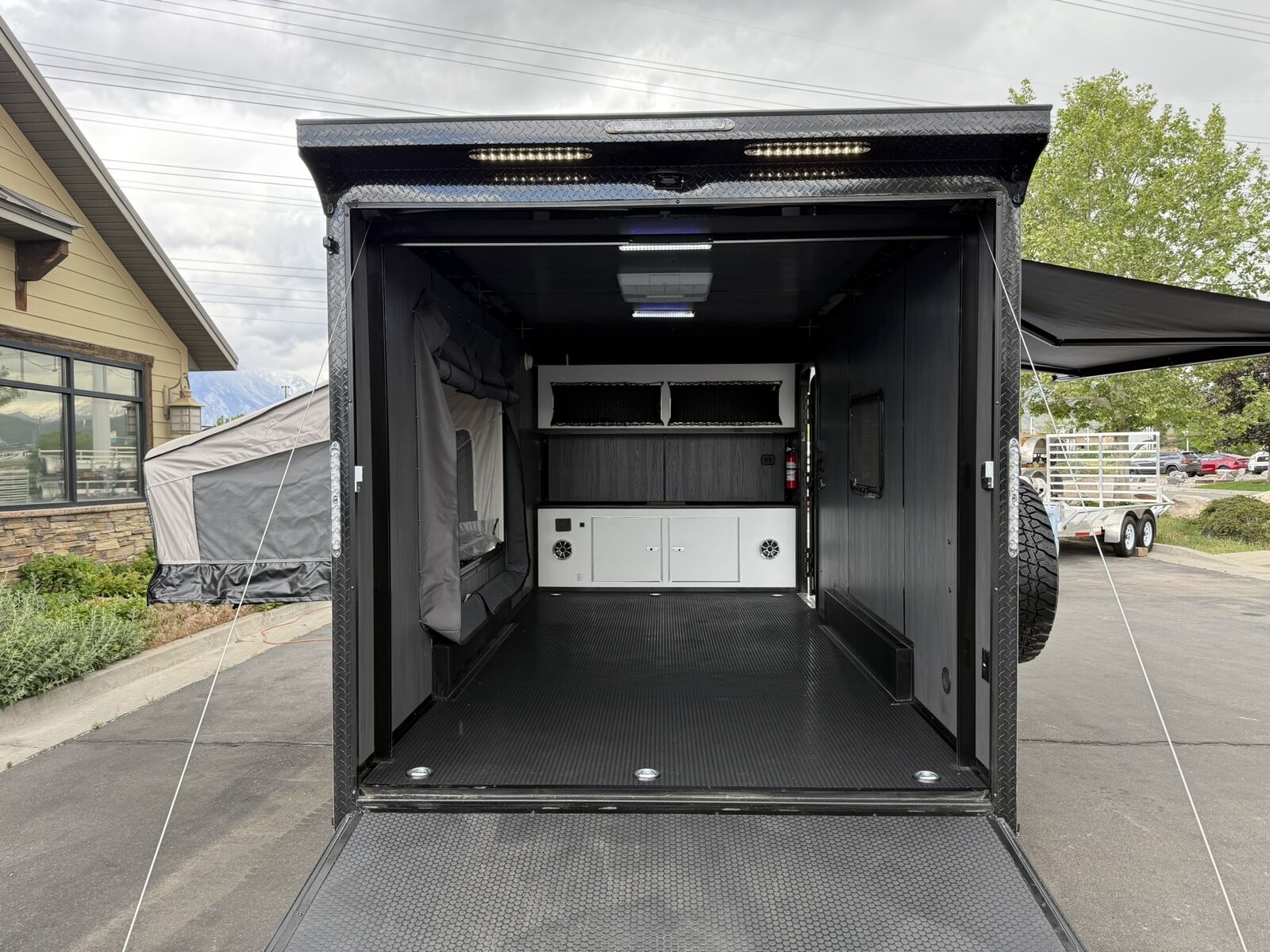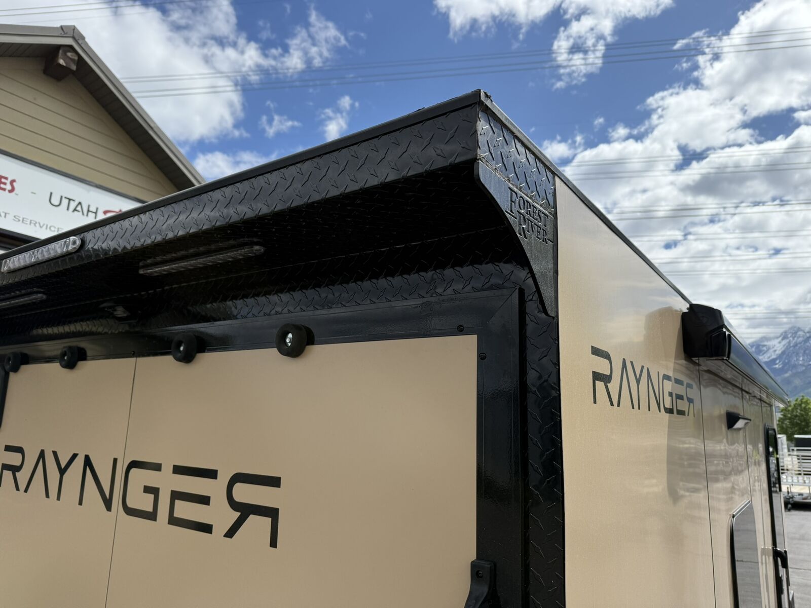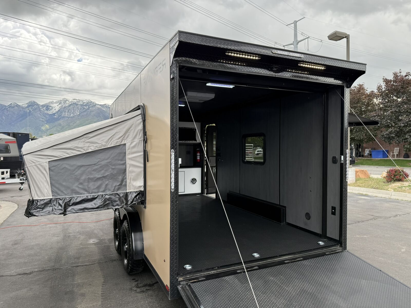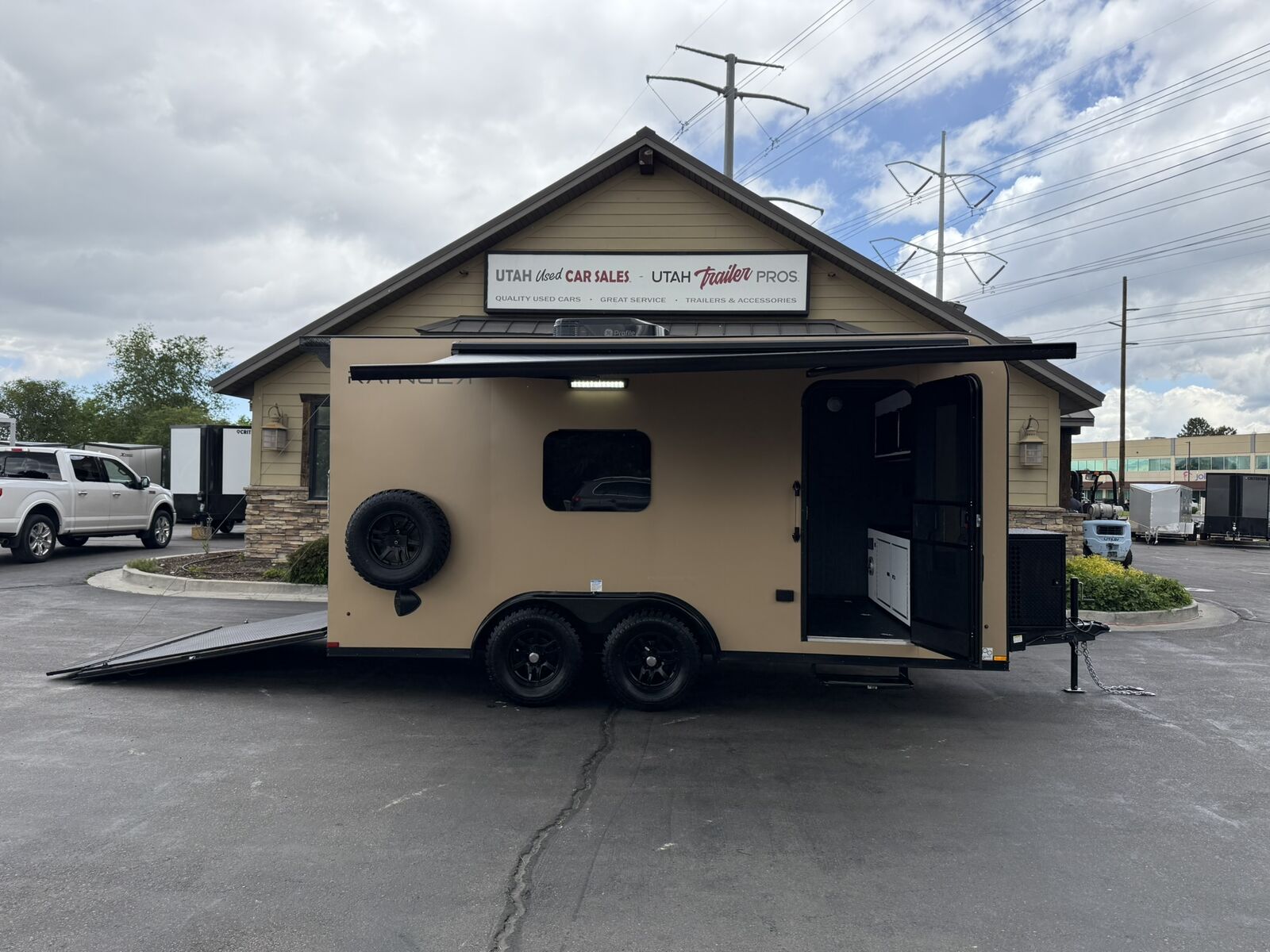 LIMITED TIME $222 A MONTH WITH ZERO DOWN WITH OUR SPECIAL LOCAL CREDIT UNION PARTNER!!! NO PRE-PAYMENT PENALTIES!!! NEW 7.5 WIDE MODEL!!! FITS ANY STOCK SIDE BY SIDE UTV!!! RAYNGER PREMIUM OFF ROAD TOY HAULER CAMPER!!! 20 Gal Fresh Water Tank with On Demand Water Heater and Water Pump! Outdoor Shower! 18 INCH GROUND CLEARANCE!!! OFF ROAD TIRES!!! FULLY INSULATED!!! HEATING AND A/C!!! WET SOUND STEREO!!! FOLD OUT/POP OUT TENT WITH MATTRESS!!! Ventilated Locking Generator Box!!! UPGRADED TORSION AXLES!!! 14.2 Foot Long Garage Space!!! And Much MUCH MORE!!! Check out our Specs!!! Also available in 18 foot models. 18 Foot Models can have 3 Fold Out Beds/Pop Out Tents. 16 Foot and 18 Foot Models will fit ANY stock 4 Seater Side by Side • 6” I Beam Frame• Flat Top Design• Flat Front Design• Wall Posts 16” on Center• Cross Members 16” on Center• Roof Bows 16” on Center• Rust Inhibiting Z-Tech Protection on Chassis• Ameraguard on Tongue• Ameraguard on Rear Bumper• Ameraguard Around All Door Openings and Stepwell• Ameraguard Around Edges of Ramp Door• 3500 LB Spring Axles• 2-5/16” Coupler• One-Piece Aluminum Roof• ST235/75R15 Aluminum Wheels with Chrome Center Caps• 2000# Ramp Door with Eberhard Latch• 30” Tempered Glass RV Door with Screen Door• .030 Exterior Metal with Screwless Sides• 24” Black Stoneguard• 3” Black Bottom Trim• Sand Pad• Black Door Hold• 2.7mm Charcoal Textured Vinyl Ceiling • 9mm Charcoal Textured Vinyl Walls• 3/4” Engineered Wood Floor with Rubber Coin Overlay• (6) 1200 LB Floor D rings Installed with Backer Plates• LED Clearance Lights and Tail Lights• LED Back-up Lights• No Show Wheel Box• Spoiler with Toggle Switch• RV Step• 7’ Interior• (2) 17” Chrome Base Lights with Switch• (1) Black 17” Spot Light with Switch• (1) 30 Amp Panel with Marine Plug• A/C Unit with Heat Strip• (3) Interior Recepts• (1) Exterior Recept• 12V Battery and Charge Line• Prep for Backup Camera• Wet Sounds System• (3) Blue Interior Cabinet Lights• (1) 6’ Section of Flex Lights• Black ATP Rear Header and Hoop• Black ATP Fenders• Insulated Walls & Ceiling• Base Cabinets• Overhead Cabinets with Netting Over Compartments• Pop Out Tent• Black ATP Storage/Generator Box Mounted On Tongue 7SW092746