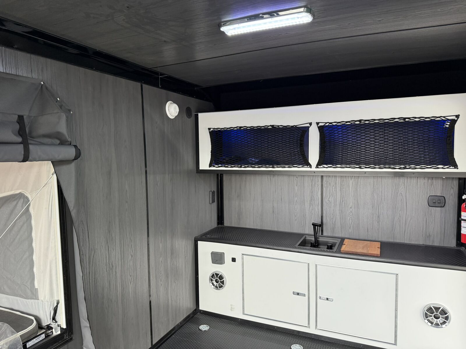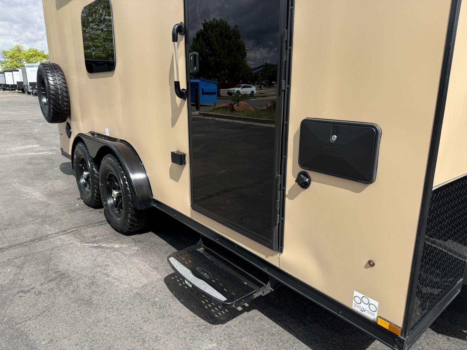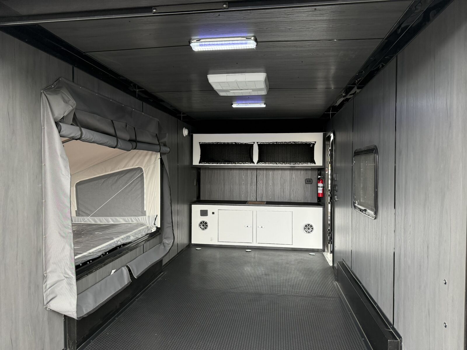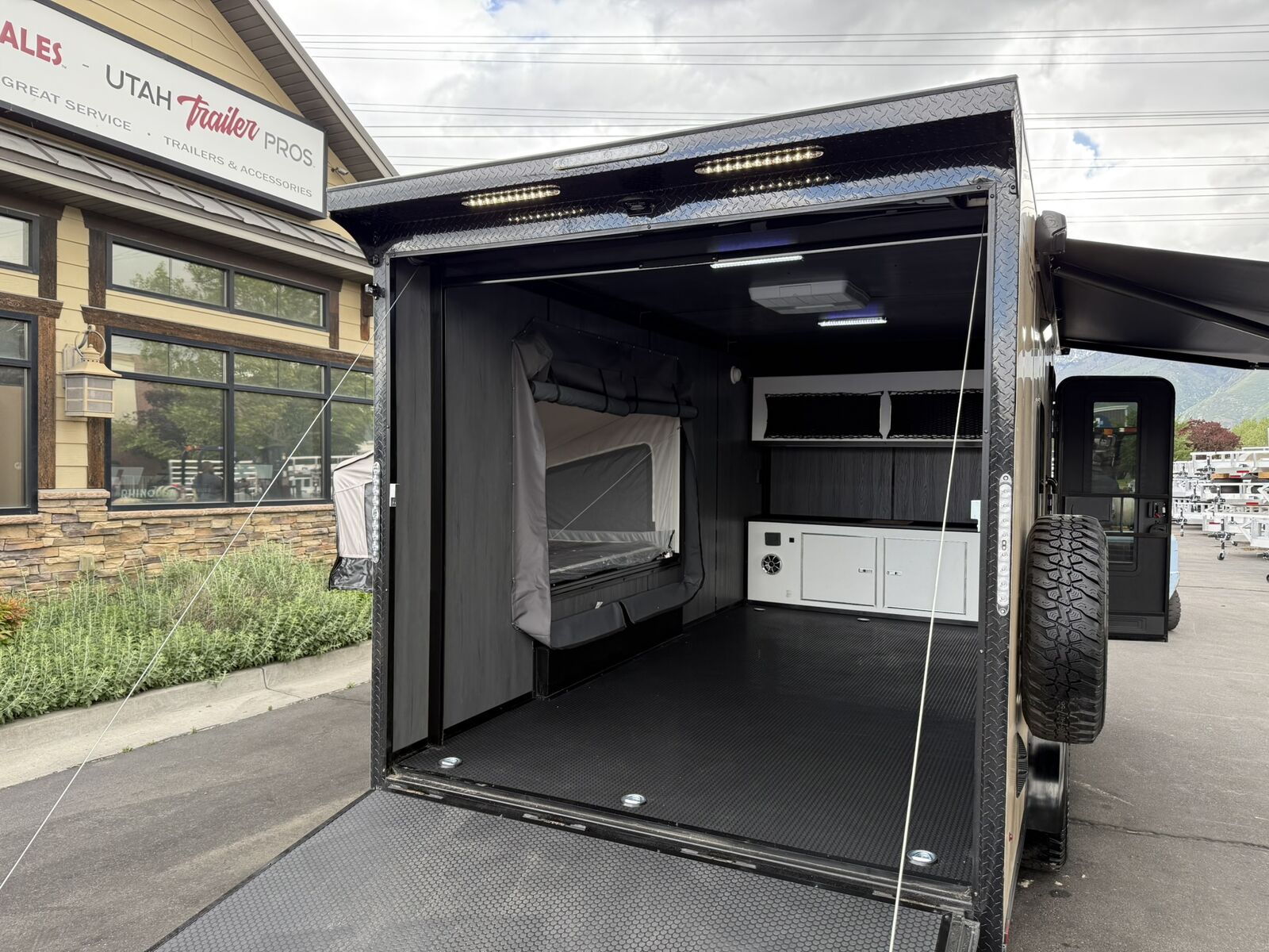LIMITED TIME $222 A MONTH WITH ZERO DOWN WITH OUR SPECIAL LOCAL CREDIT UNION PARTNER!!! NO PRE-PAYMENT PENALTIES!!! NEW 7.5 WIDE MODEL!!! FITS ANY STOCK SIDE BY SIDE UTV!!! RAYNGER PREMIUM OFF ROAD TOY HAULER CAMPER!!! 20 Gal Fresh Water Tank with On Demand Water Heater and Water Pump! Outdoor Shower! 18 INCH GROUND CLEARANCE!!! OFF ROAD TIRES!!! FULLY INSULATED!!! HEATING AND A/C!!! WET SOUND STEREO!!! FOLD OUT/POP OUT TENT WITH MATTRESS!!! Ventilated Locking Generator Box!!! UPGRADED TORSION AXLES!!! 14.2 Foot Long Garage Space!!! And Much MUCH MORE!!! Check out our Specs!!! Also available in 18 foot models. 18 Foot Models can have 3 Fold Out Beds/Pop Out Tents. 16 Foot and 18 Foot Models will fit ANY stock 4 Seater Side by Side • 6” I Beam Frame• Flat Top Design• Flat Front Design• Wall Posts 16” on Center• Cross Members 16” on Center• Roof Bows 16” on Center• Rust Inhibiting Z-Tech Protection on Chassis• Ameraguard on Tongue• Ameraguard on Rear Bumper• Ameraguard Around All Door Openings and Stepwell• Ameraguard Around Edges of Ramp Door• 3500 LB Spring Axles• 2-5/16” Coupler• One-Piece Aluminum Roof• ST235/75R15 Aluminum Wheels with Chrome Center Caps• 2000# Ramp Door with Eberhard Latch• 30” Tempered Glass RV Door with Screen Door• .030 Exterior Metal with Screwless Sides• 24” Black Stoneguard• 3” Black Bottom Trim• Sand Pad• Black Door Hold• 2.7mm Charcoal Textured Vinyl Ceiling • 9mm Charcoal Textured Vinyl Walls• 3/4” Engineered Wood Floor with Rubber Coin Overlay• (6) 1200 LB Floor D rings Installed with Backer Plates• LED Clearance Lights and Tail Lights• LED Back-up Lights• No Show Wheel Box• Spoiler with Toggle Switch• RV Step• 7’ Interior• (2) 17” Chrome Base Lights with Switch• (1) Black 17” Spot Light with Switch• (1) 30 Amp Panel with Marine Plug• A/C Unit with Heat Strip• (3) Interior Recepts• (1) Exterior Recept• 12V Battery and Charge Line• Prep for Backup Camera• Wet Sounds System• (3) Blue Interior Cabinet Lights• (1) 6’ Section of Flex Lights• Black ATP Rear Header and Hoop• Black ATP Fenders• Insulated Walls & Ceiling• Base Cabinets• Overhead Cabinets with Netting Over Compartments• Pop Out Tent• Black ATP Storage/Generator Box Mounted On Tongue 7SW092746