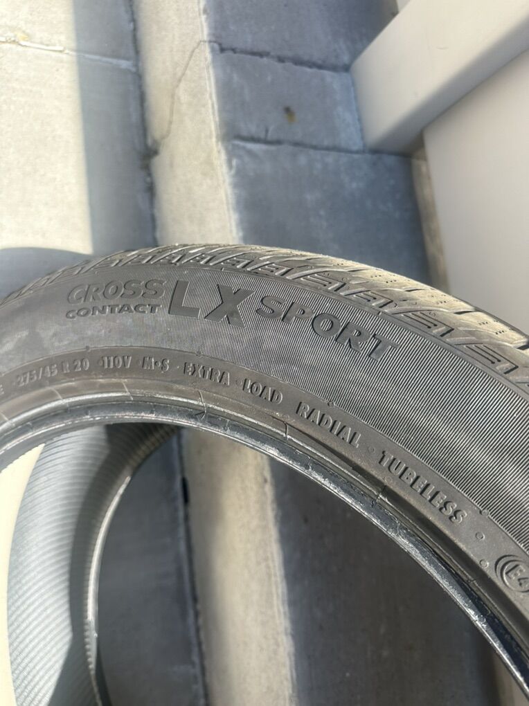 VenmoFor sale is 1 tire it is a continental cross contact LX sport, sizes 275/45r20 it has the foam inside for noise reduction. It has approximately 5.5./3nds of tread left, which is probably around 40% tread left this would make for a great spare or a replacement.