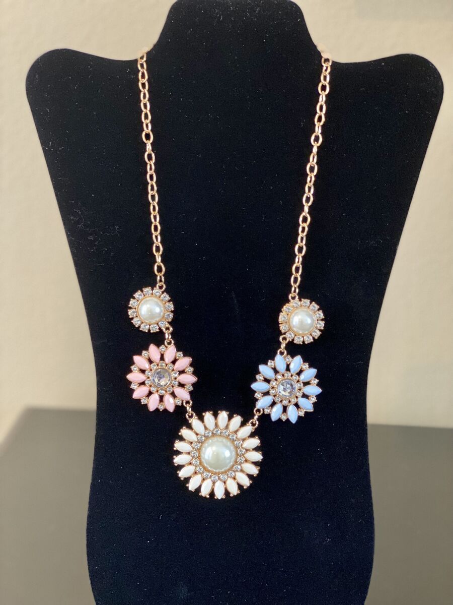 NEW - Gorgeous Soft Pastel Flowers Necklace- Beads and Rhinestones Perfect 4 Sparkle- C PIXS . Last one.
