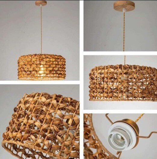 This striking Rattan Chandelier fixture is designed with a hand-woven rattan shade crafted from strong, natural materials that are both safe and sustainable. Creating a beautiful rose-colored ambiance, the light passing through the wicker shade at night casts an elegant, chic pattern on the walls and ceiling. A timeless addition to any home. This Wicker Pendant Light features a 12.4" shade width, 7.5" shade height, and 41.3" wire length, as well as a 4" adjustable ceiling tray. It is made from safe and eco-friendly rattan material, and is compatible with E26 bulbs of up to 60W. Bulbs are not included. Effortless Installation: Installation is simple and easy. All necessary hardware is included and setup takes minutes. Remember to disconnect power before installation. For added safety, we recommend hiring a professional electrician (follow the link to view the installation video). Wide range of applications: This Home Woven Pendant Light combines vintage and simple styles, perfect for decorating dining rooms, living rooms, kitchen islands, bedrooms, foyers, entrances, hallways, staircases, farmhouses, cafes, basements, bars, clubs and libraries. rattan chandeliers With its natural material composition, it can easily match and enhance any home décor. Easily adjustable cord length allows you to customize the lighting of your room. Ensure Quality with Amazon: Natural Material Hand-Woven Hanging Lamp REIUYTHO We strive to provide you with the best quality lighting fixtures, backed by our 24/ customer service and a satisfaction guarantee. If you're not happy with your purchase, we'll work with you to make it right. Buy with confidence knowing you're getting the highest quality