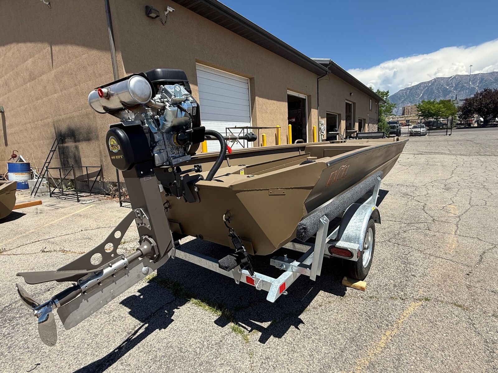 Brand New 2025 Excel Eclipse 1754 With Mud Buddy 40hp Mini. Steel galvanized trailer.
