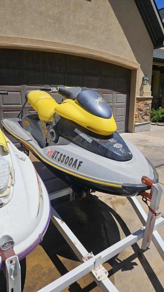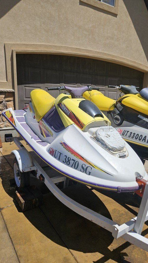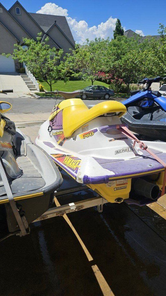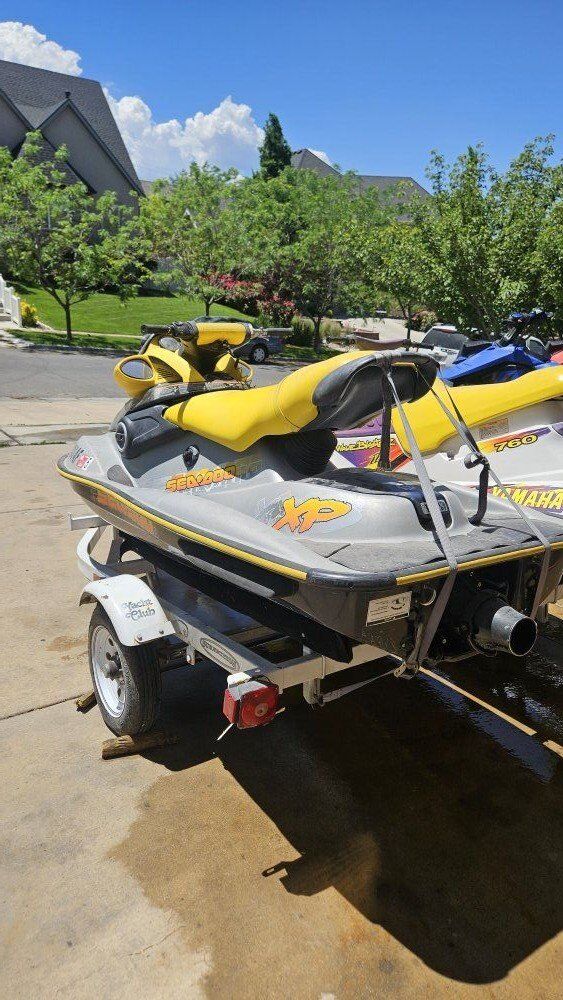 Venmo$4000 firm. No trades. Selling one of our sets of Jetskis. They both fire up and run good. Both have brand new batteries and impellers. 2002 Seadoo sp 900 1996 Yamaha wave blaster 760 Both are 2 strokes with separate compartments for oil. They mix the gas themselves automatically. Trailer included! We bought new seadoos and no longer need them I have videos of them running if you would like