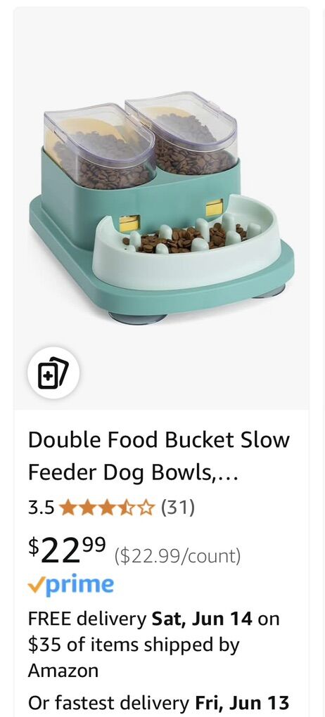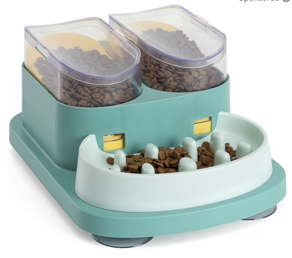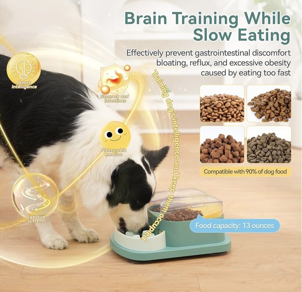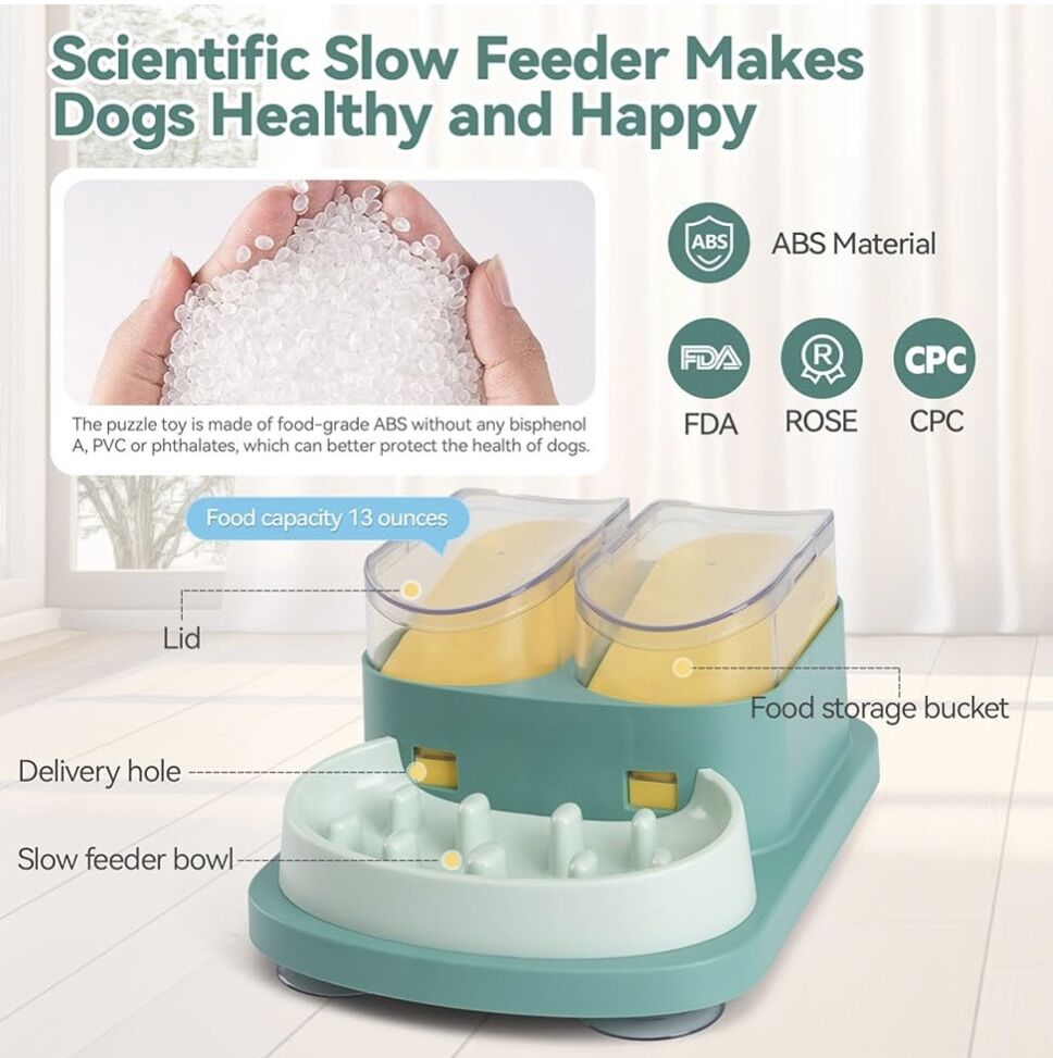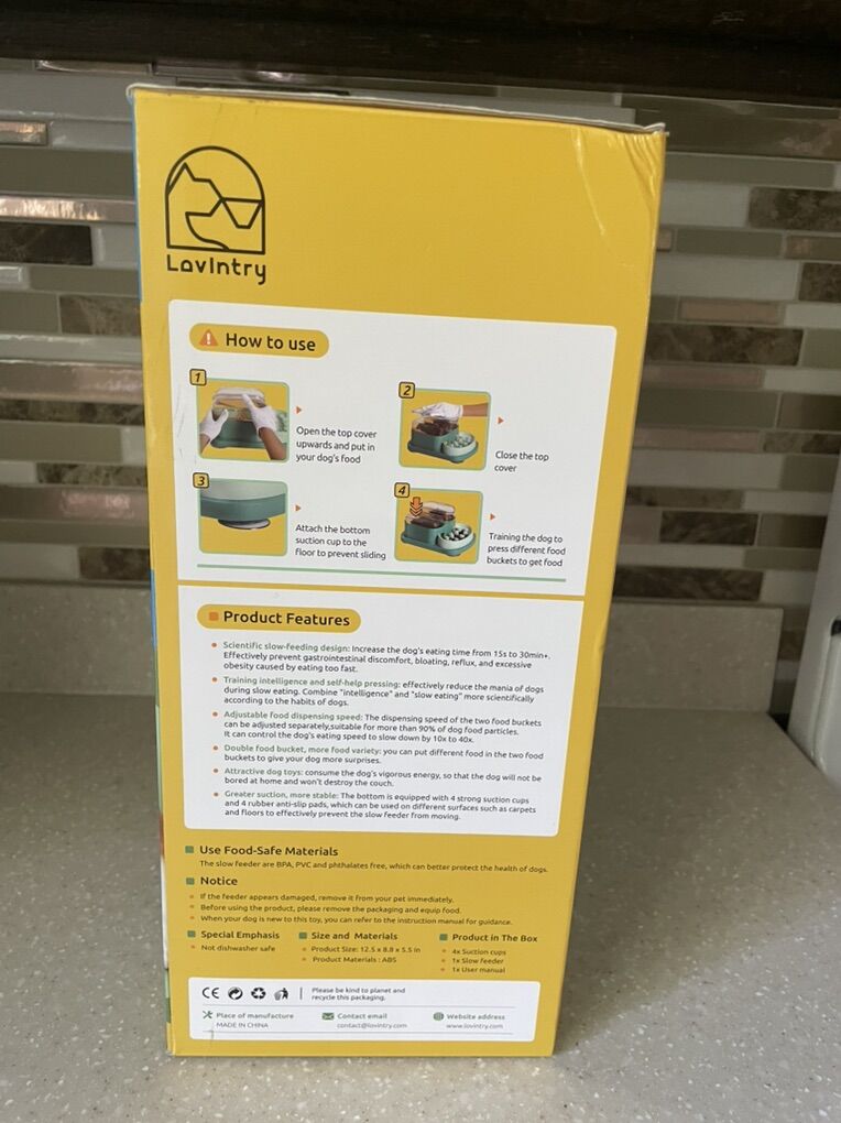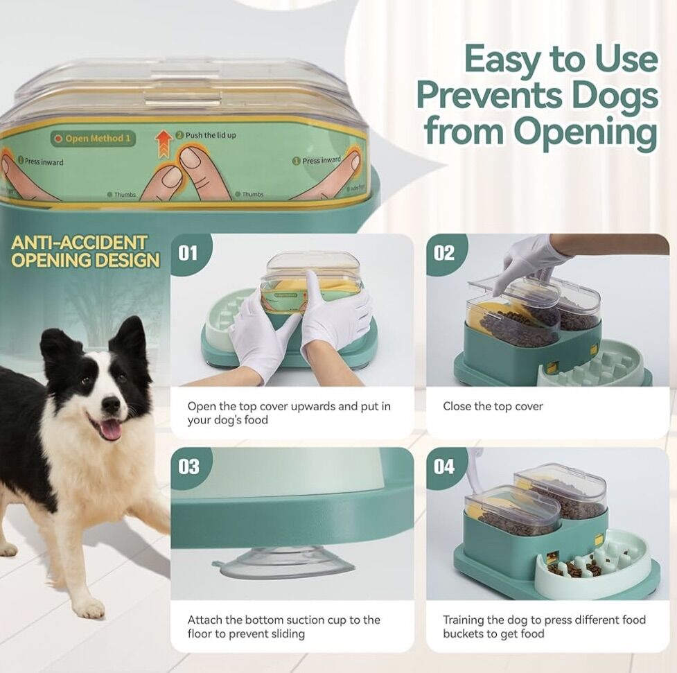 VenmoDouble Food Bucket Dog Slow Feed Puzzle Toy. Puzzle toy increases the dog's eating time from 15s to 30min+. Effectively prevent gastrointestinal discomfort, bloating, reflux, and excessive obesity caused by eating too fast How to get off the lid: Follow the instructions to find the two points of force, use your two index fingers to press hard at the points of force, and then push the lid up with your thumbs, it will be opened easiy. Finding the wrong points or using brute force to open it is incorrect. It can effectively prevent your dog from opening it Training Intelligence: Get rewards through your dog's exploration and learning. The interactive puzzle toys exercise your dog's intelligence and keep them occupied, less boredom and more pleasure Double Food Bucket, More Food Variety: Put different food in the two food buckets of the dog treat puzzle to give your dog more surprises Adjustable Food Dispensing Speed: The dispensing speed of the two food buckets of the puzzle feeder can be adjusted separately, suitable for more than 90% of dog food particles. More flexible and more fun Greater Suction, More Stable: The bottom of puzzle feeder is equipped with 4 strong suction cups and 4 rubber anti-slip pads, which can be used on different surfaces such as carpets and floors to effectively prevent the slow feeder from moving Reliable Materials: Made of food-grade ABS without any BPA, PVC and phthalates free, which can use it with confidence for your dog