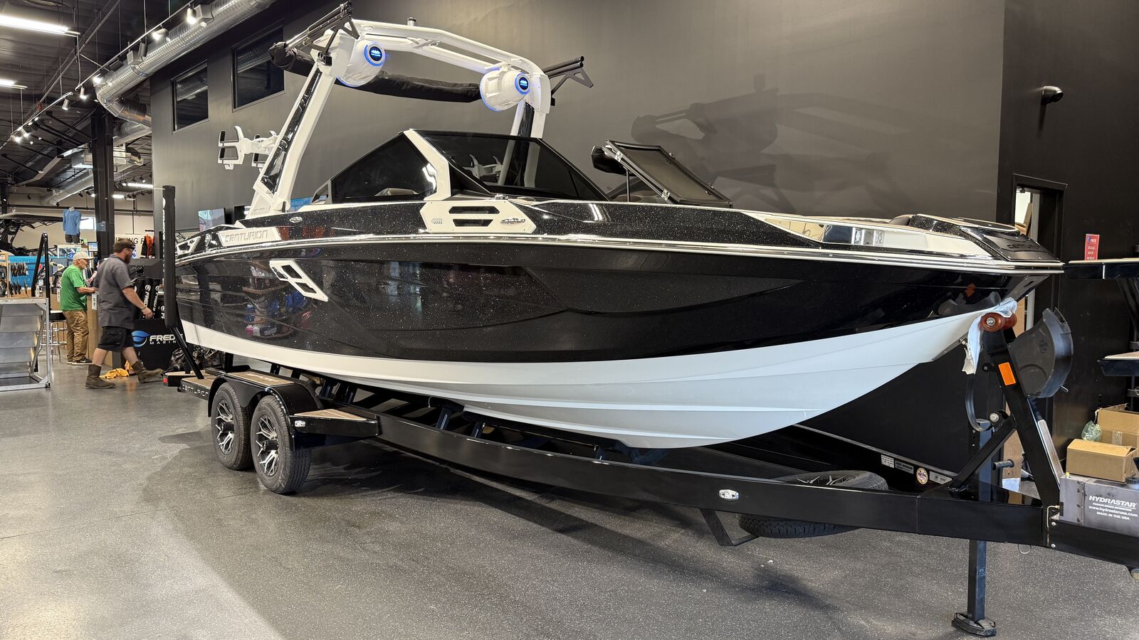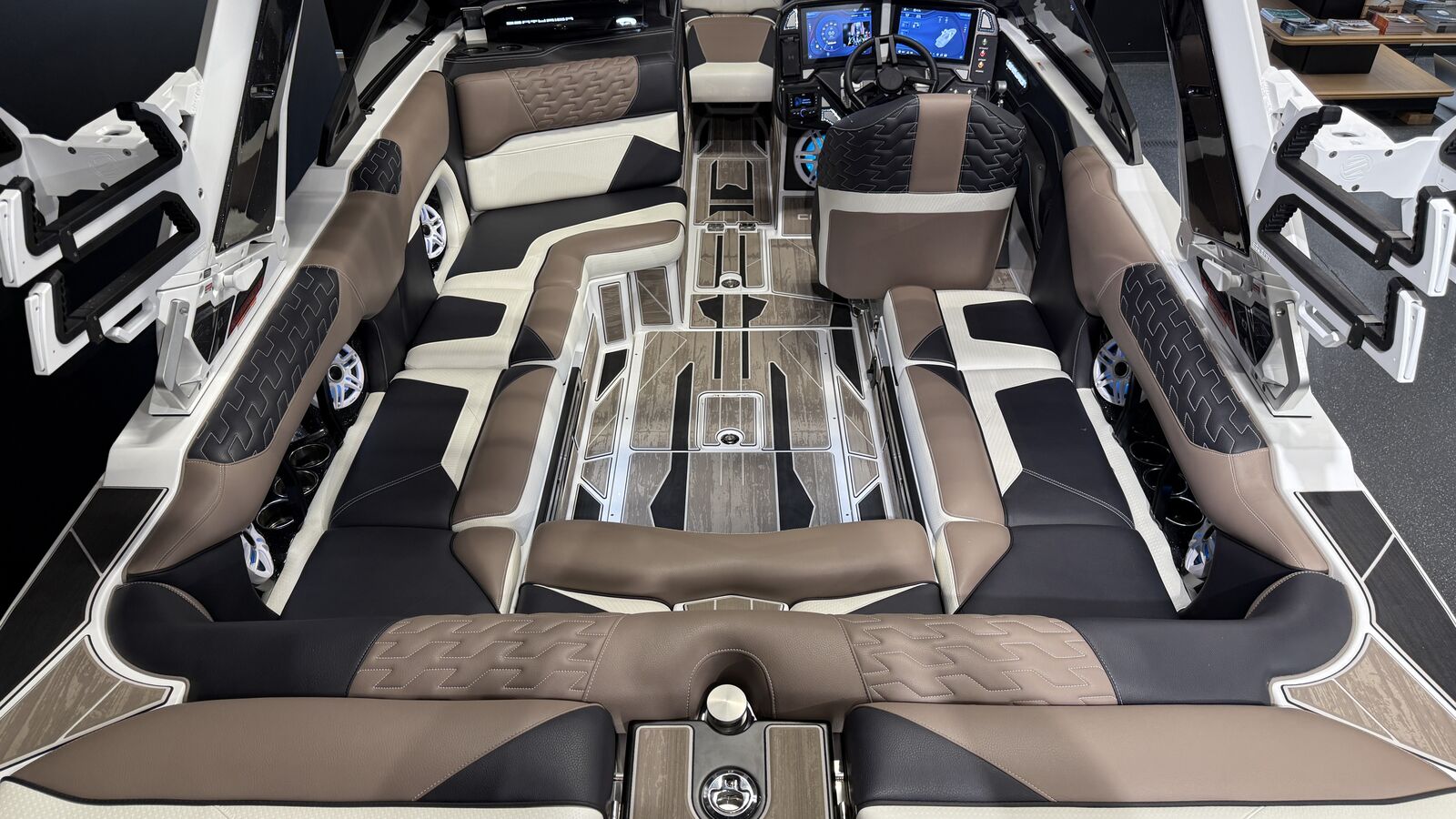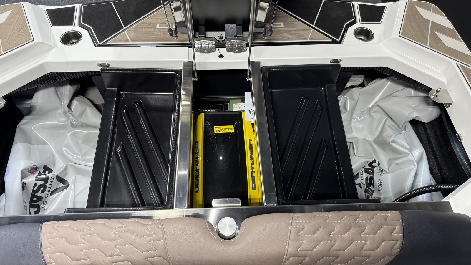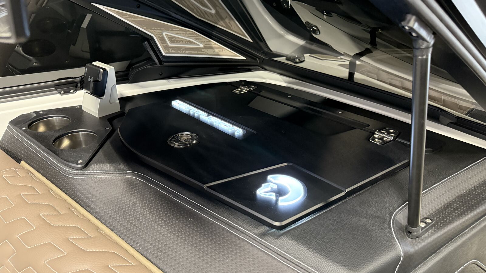Centurion’s Ri230 is twice as impressive as other boats due to its capacity as official tow boat of two World Championships in two distinct water sports disciplines – wake surfing and wakeboarding. Even during these prestigious events, the Ri230 pulls many professional and personal bests. All of our Ri Series models are flagship designs, but the Ri230 hits that sweet spot for the wake sports enthusiasts, whether professionals or beginners, seeking luxury in a 23-foot size. Its responsive handling, world class waves, wakes and ride are wrapped in comfort. It has all the things you want – as well as those you didn’t realize you want – to make your experience on the water unforgettable, whether you are an athlete or a passenger. From the Range of View (ROV) system that lets the driver see forward, behind and fuel usage data, to the four conveniently-located wireless clamping phone chargers, to the limo lighting beneath the three-position slide seat, the Lit throttle and the external plug-in access for battery charging – the Ri230 demonstrates that Centurion is paying attention to our customers’ needs. The Ri230 is the world’s best waves, wakes and ride for as many as 14 people, built with comfort and convenience in mind. Buy it for the performance, enjoy it for its luxury. You really can have it all.